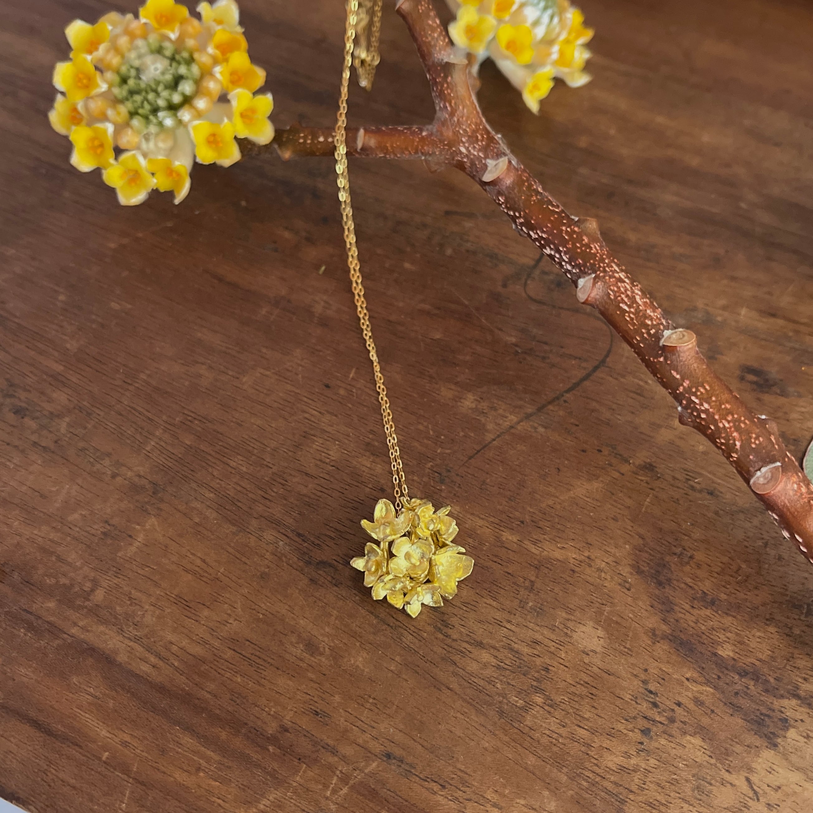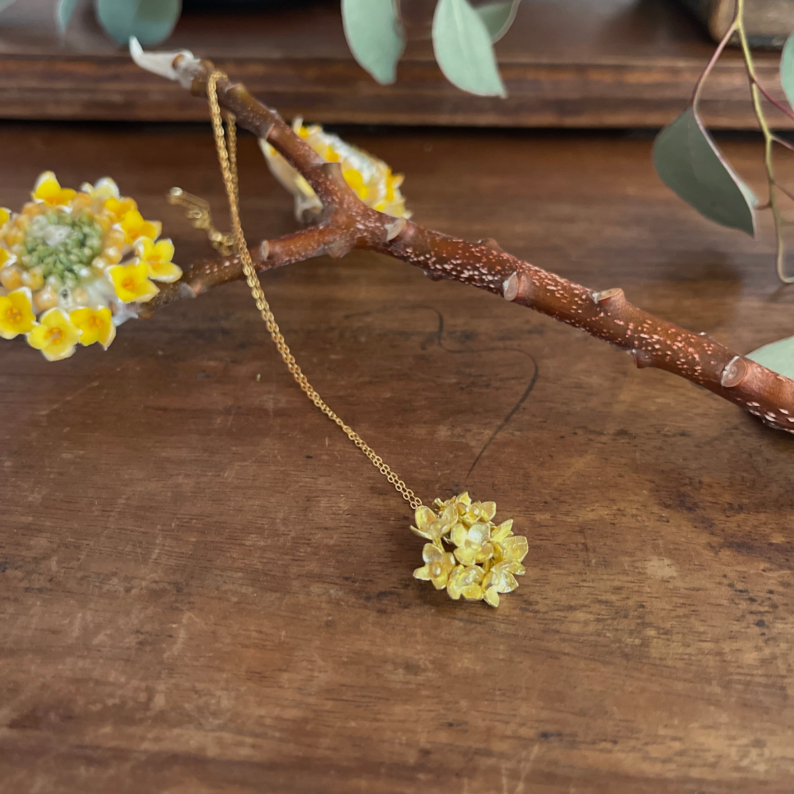和紙の原料になるミツマタは蕾から花が咲く様子が個性的です