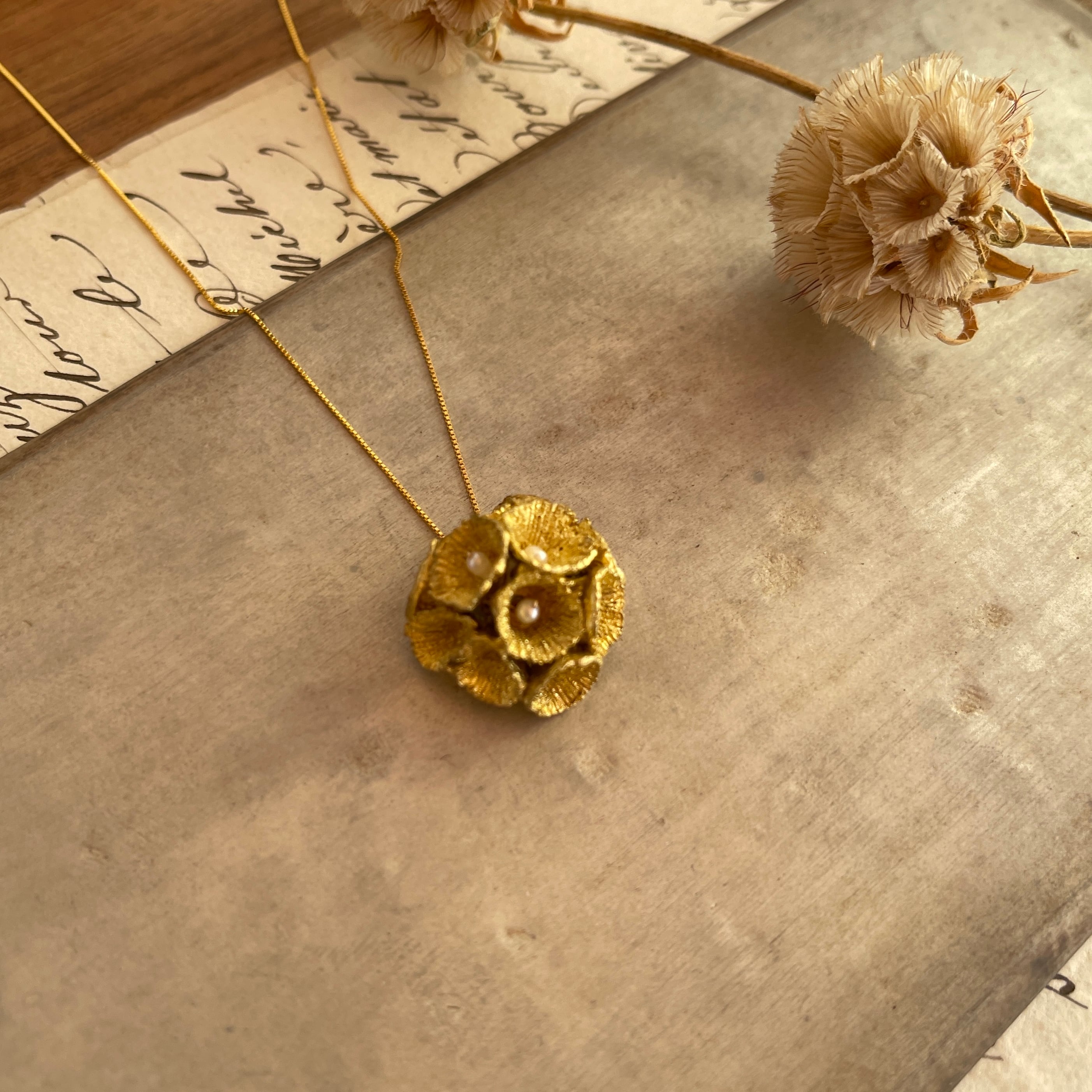 花の季節を終えたあとも、美しい姿を見せてくれるスカビオサの種をモチーフにしたネックレス。