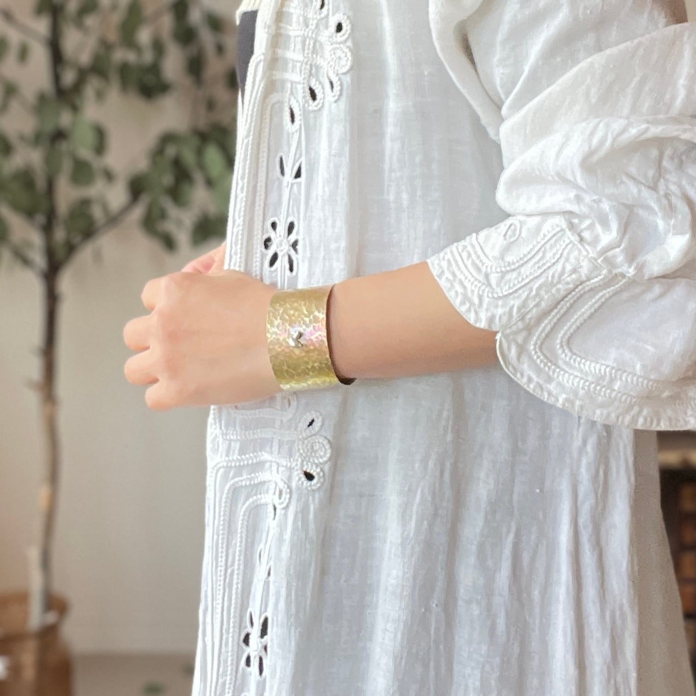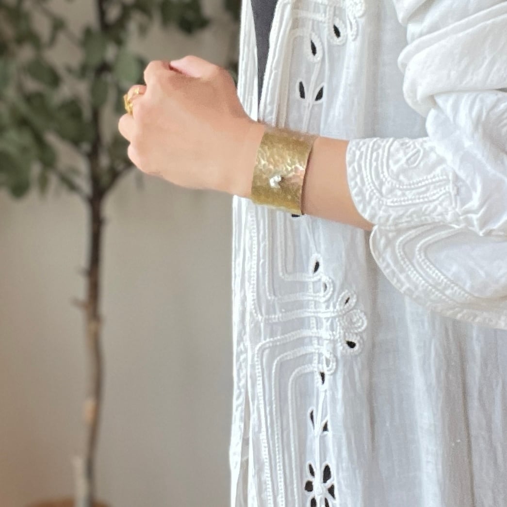 ややマットな質感の真鍮が肌になじみ、どんな装いにも自然に溶け込みます。