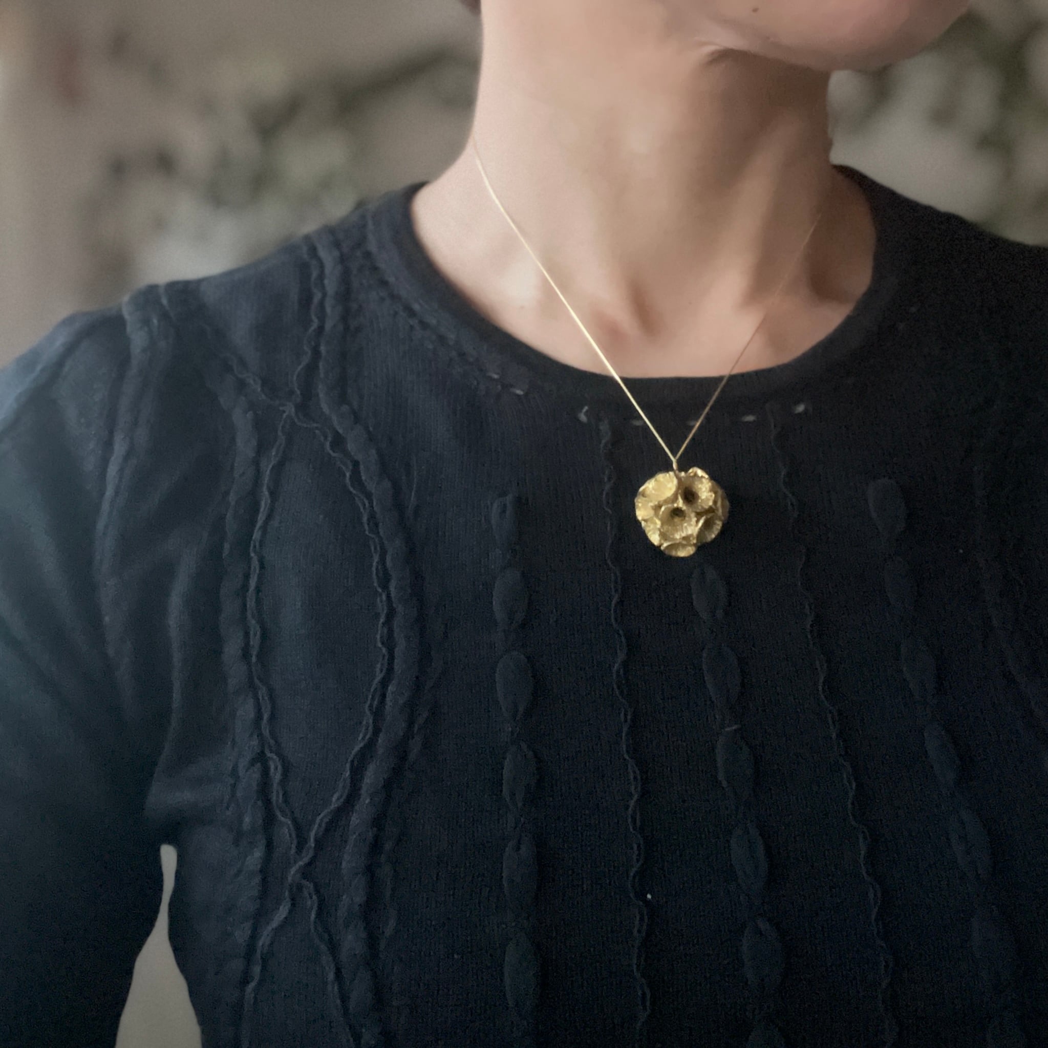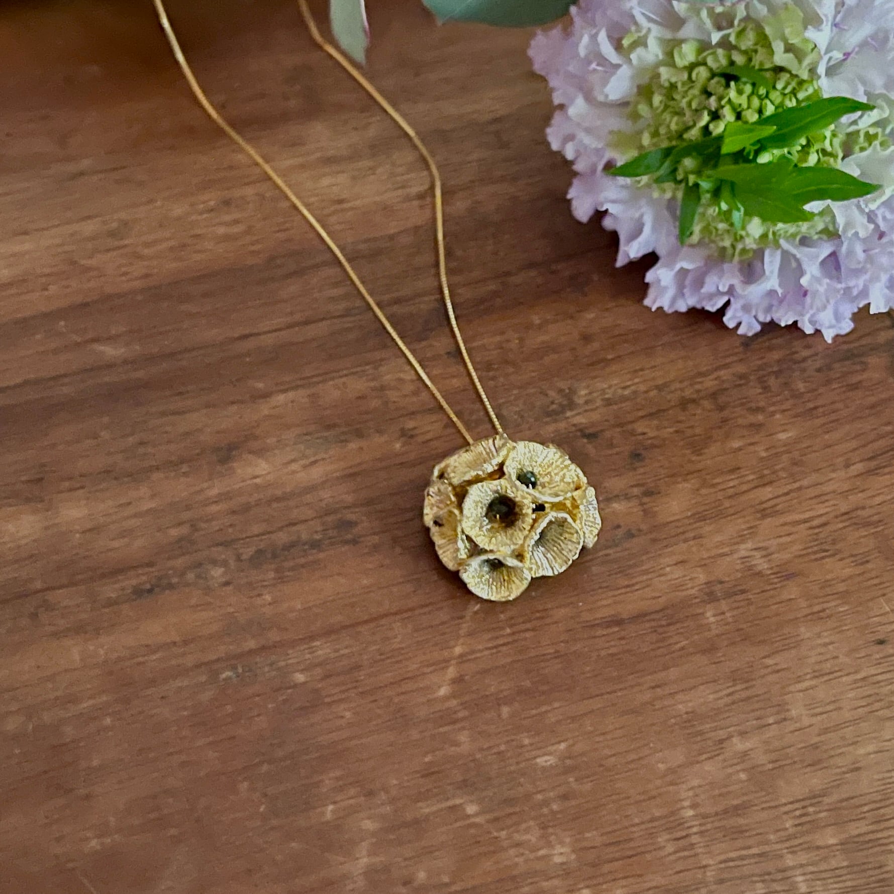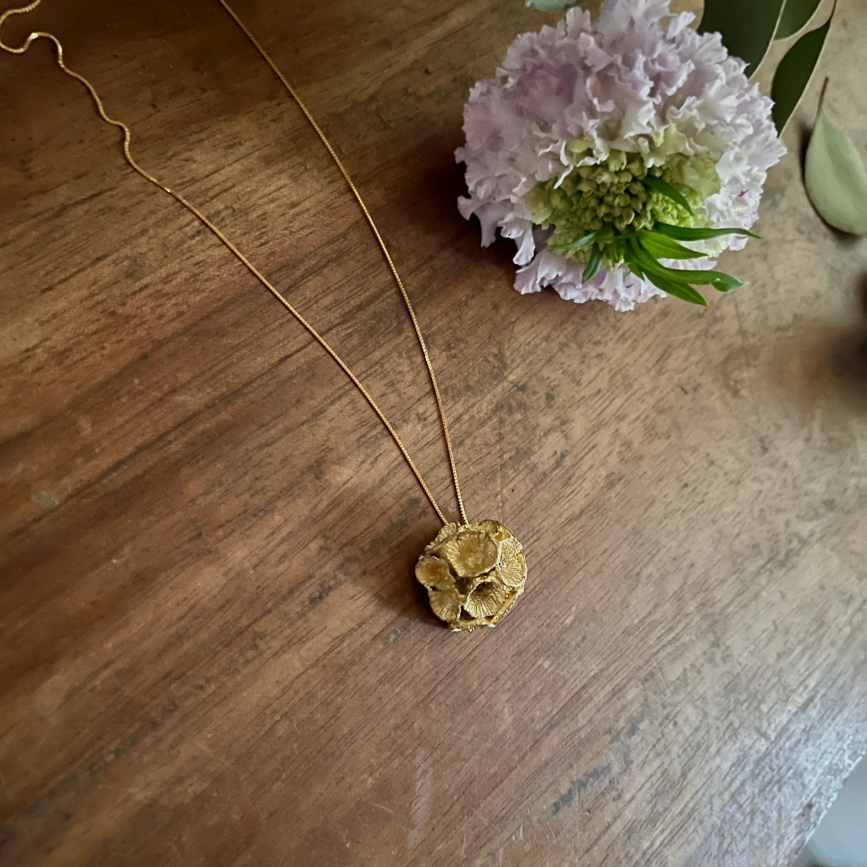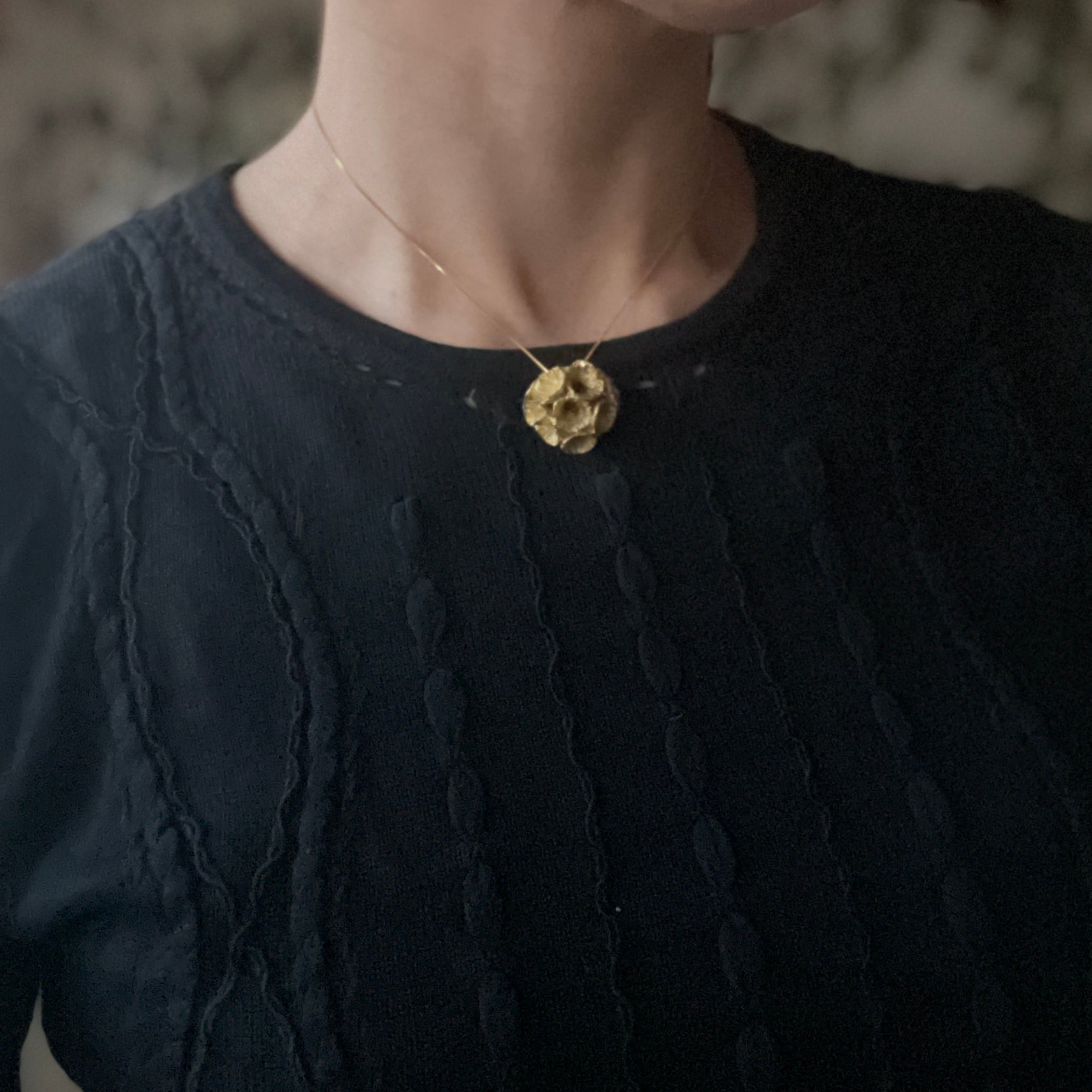 花の季節を終えたあとも、美しい姿を見せてくれるスカビオサの種をモチーフにしたネックレス。