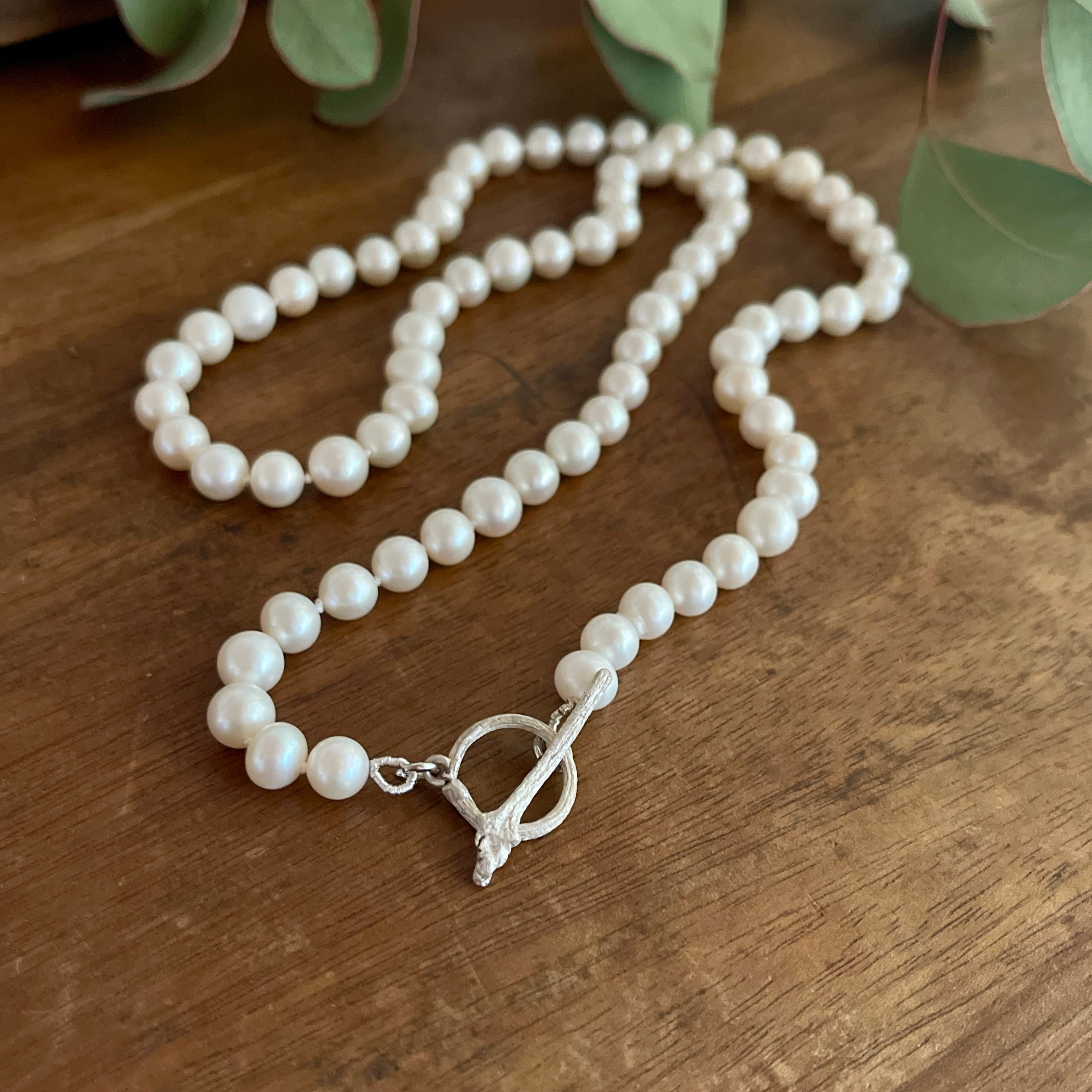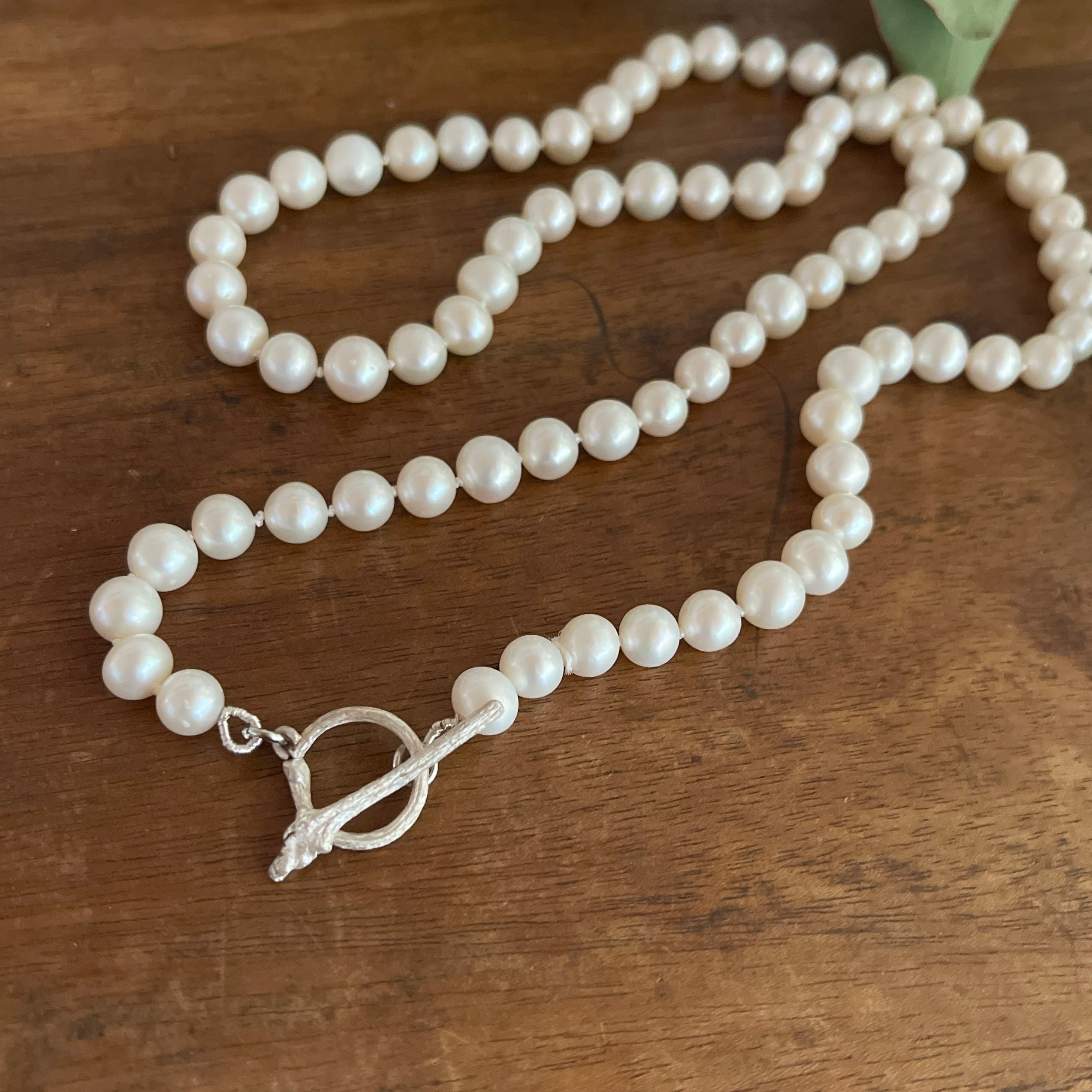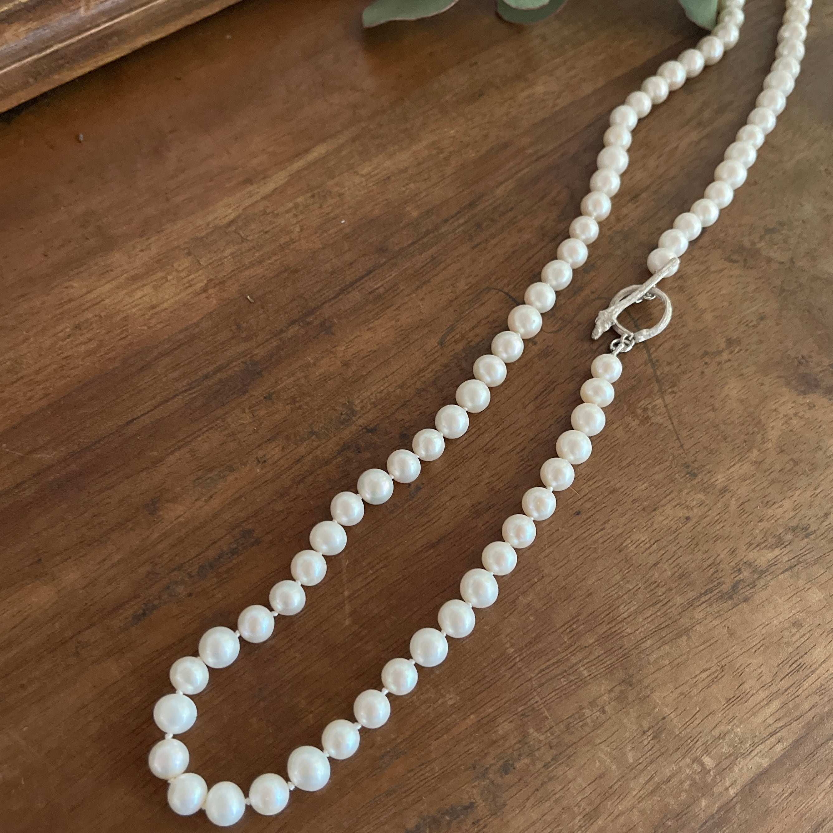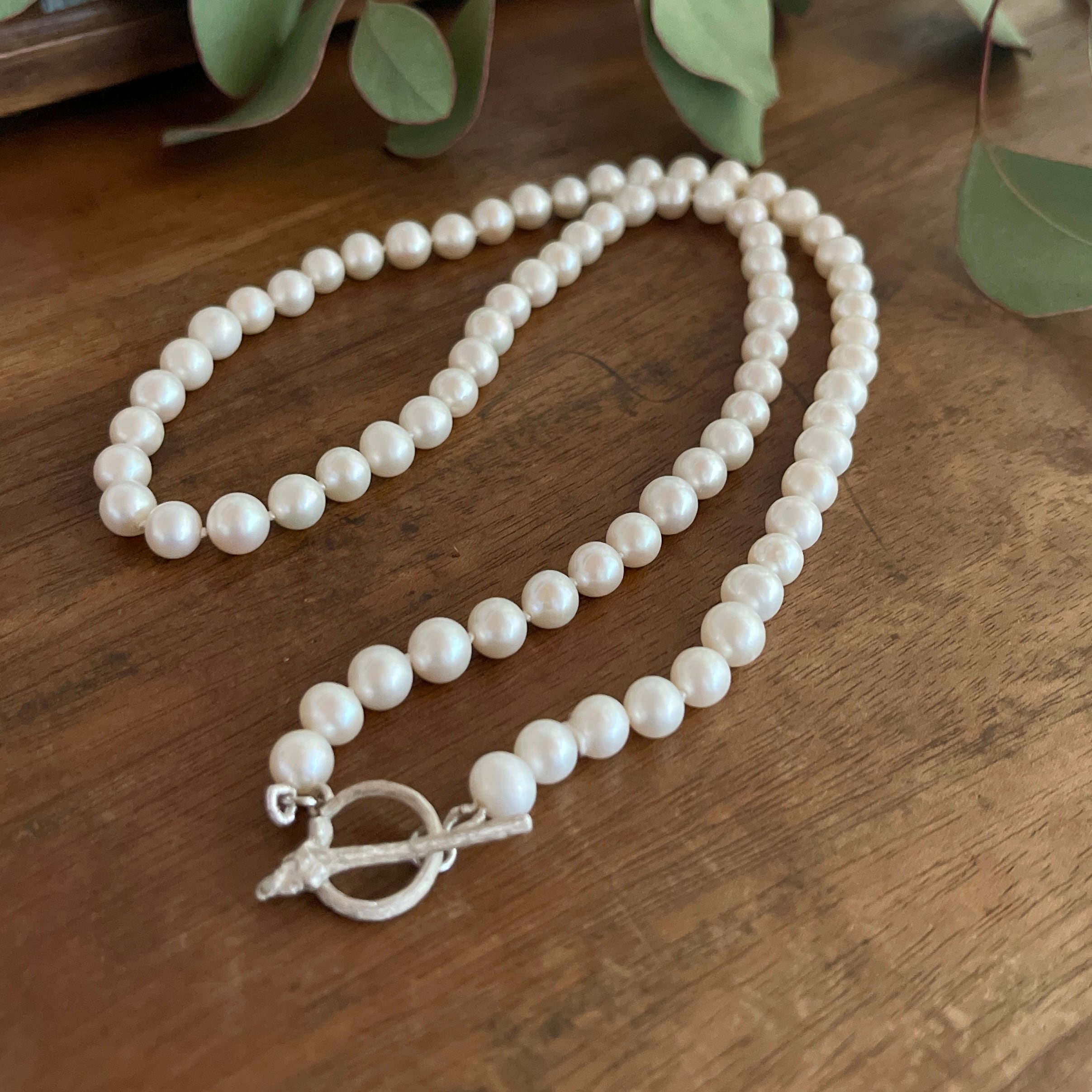 パールとパールの間はひとつひとつ結び目を作るノット仕上げのネックレスです。