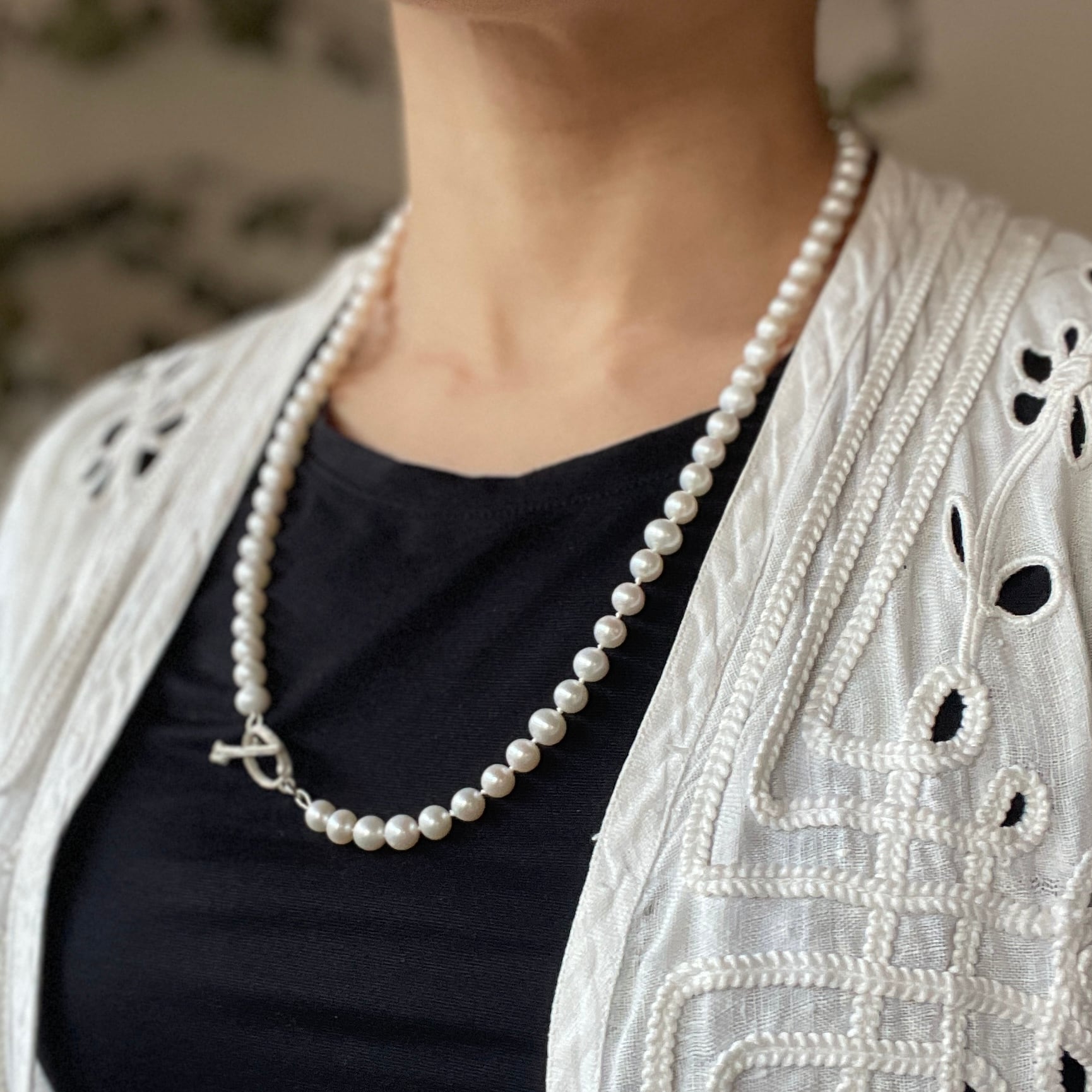 優雅さとナチュラルな美しさが融合した洗練されたデザインが特徴です。淡水パールの自然な光沢が首元を華やかに演出し、特別なシーンでも日常使いでもお楽しみいただけます。身に着けることで、心を豊かにし、日々のスタイルにアクセントを加えます。