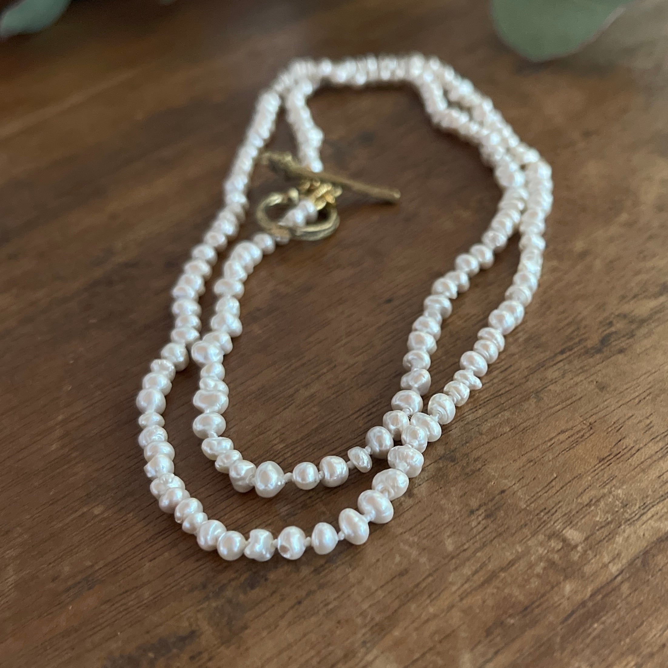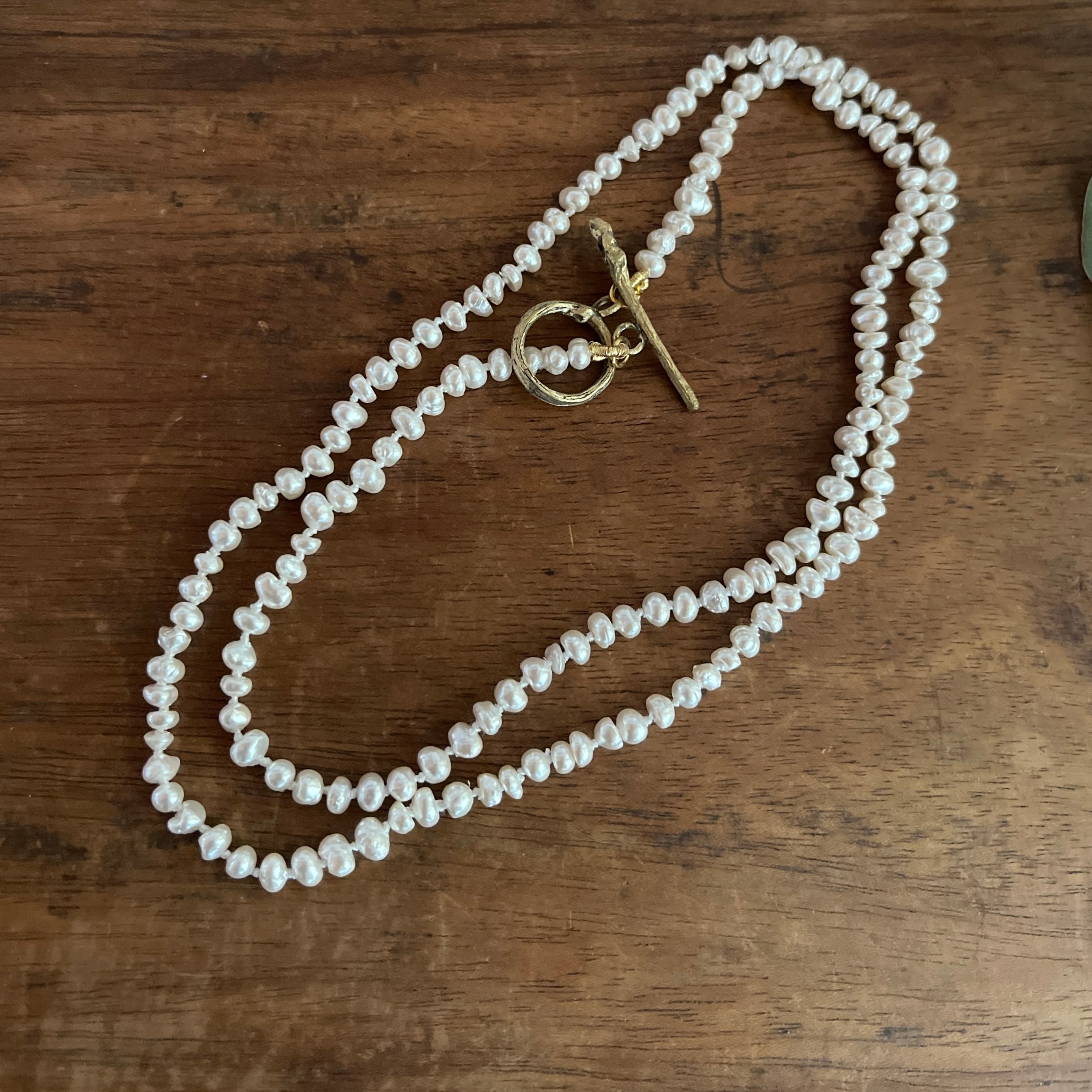 パールとパールの間はひとつひとつ結び目を作るノット仕上げのネックレスです。