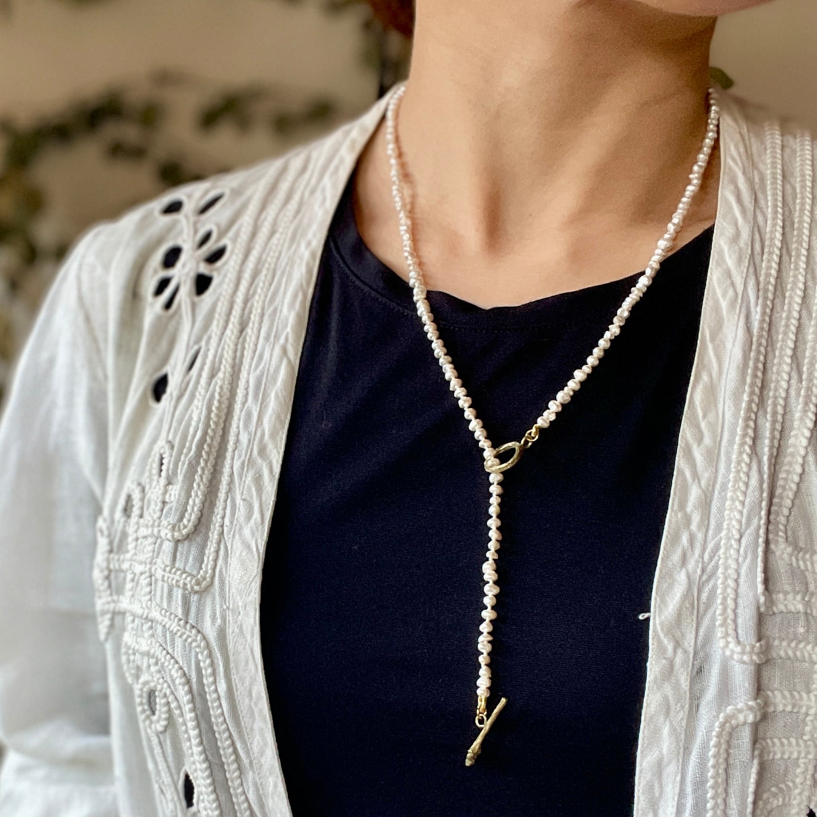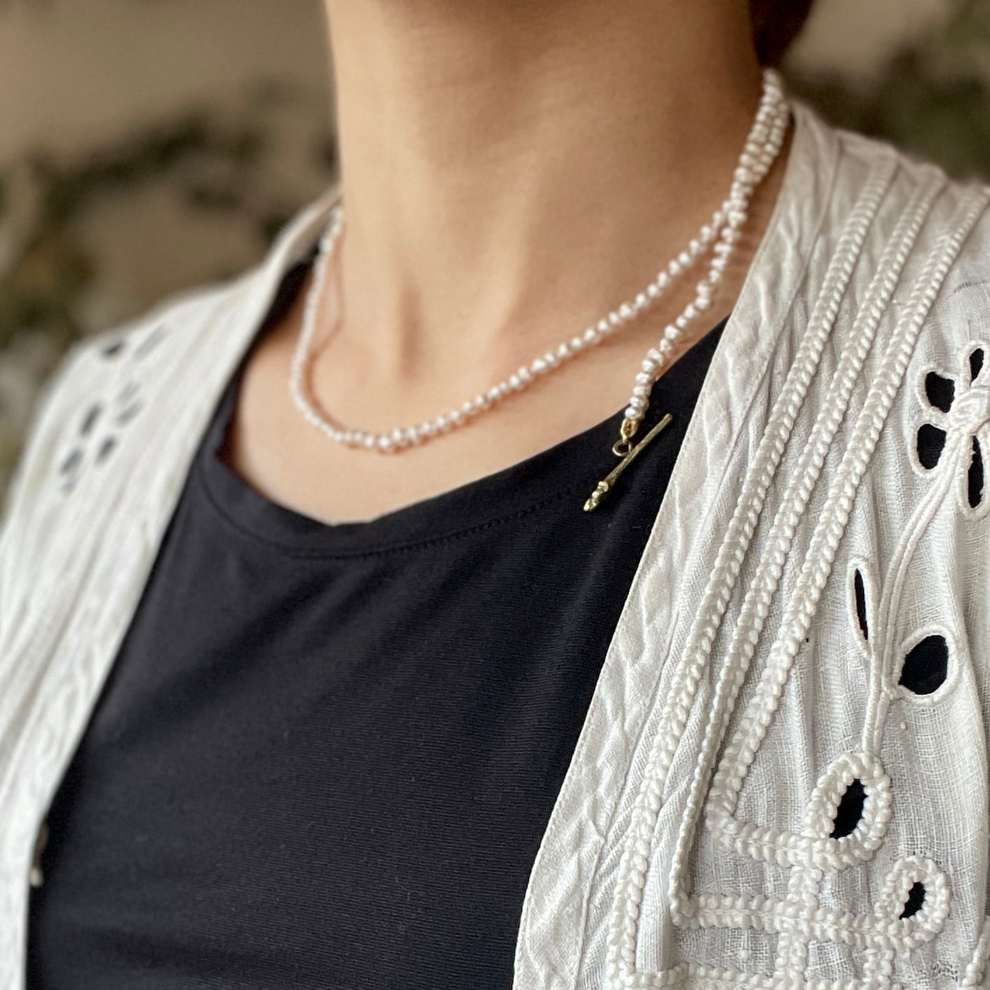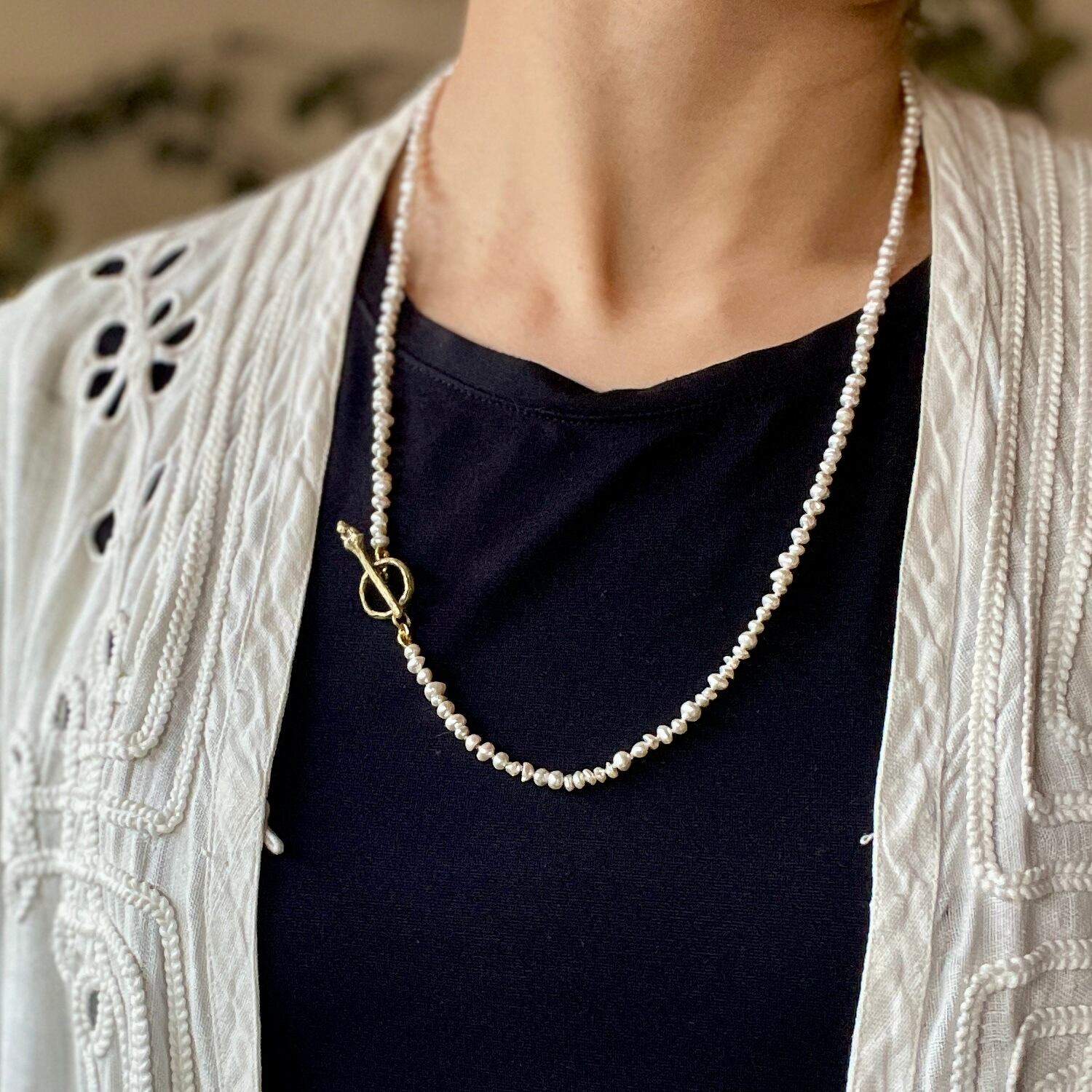 優雅さとナチュラルな美しさが融合した洗練されたデザインが特徴です。淡水パールの自然な光沢が首元を華やかに演出し、特別なシーンでも日常使いでもお楽しみいただけます。身に着けることで、心を豊かにし、日々のスタイルにアクセントを加えます。