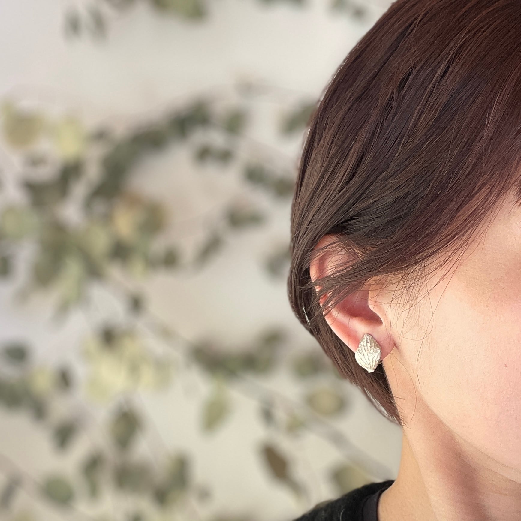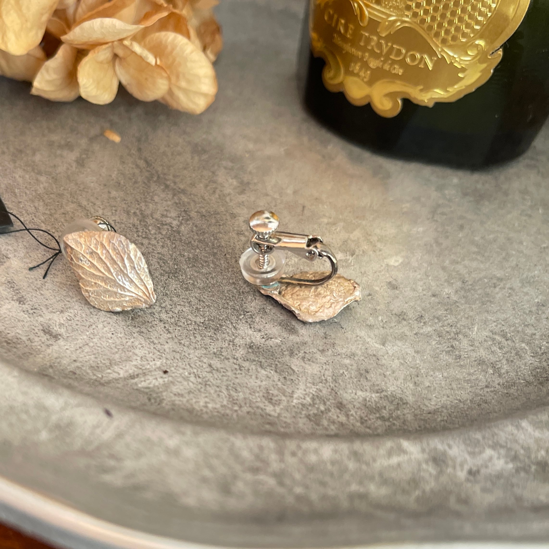 そのアジサイの花びらひとつを模りしてイヤリングに仕立てました