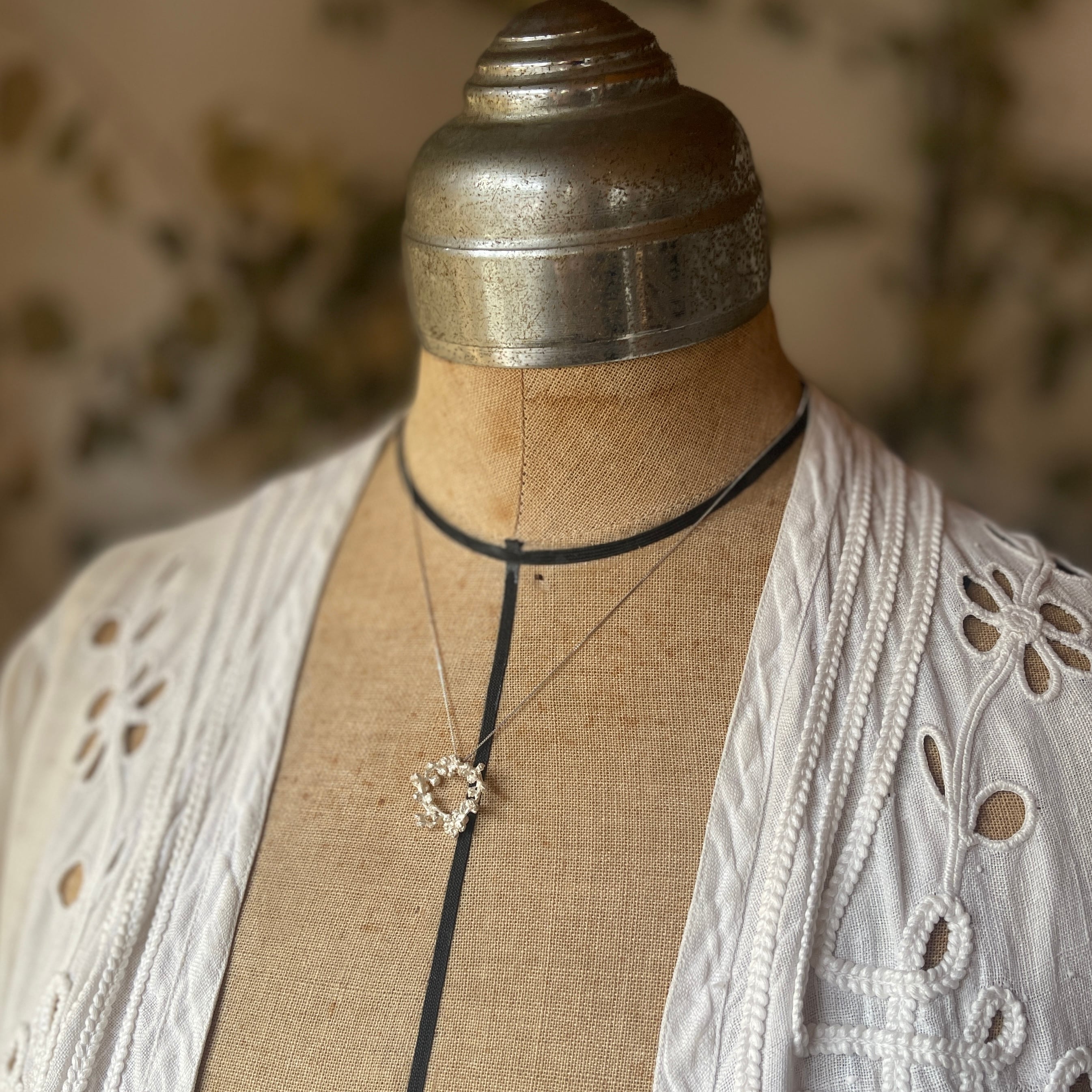最後の写真は淡水パールのネックレスと重ねてみました。セレモニーアクセとしてもおすすめです。