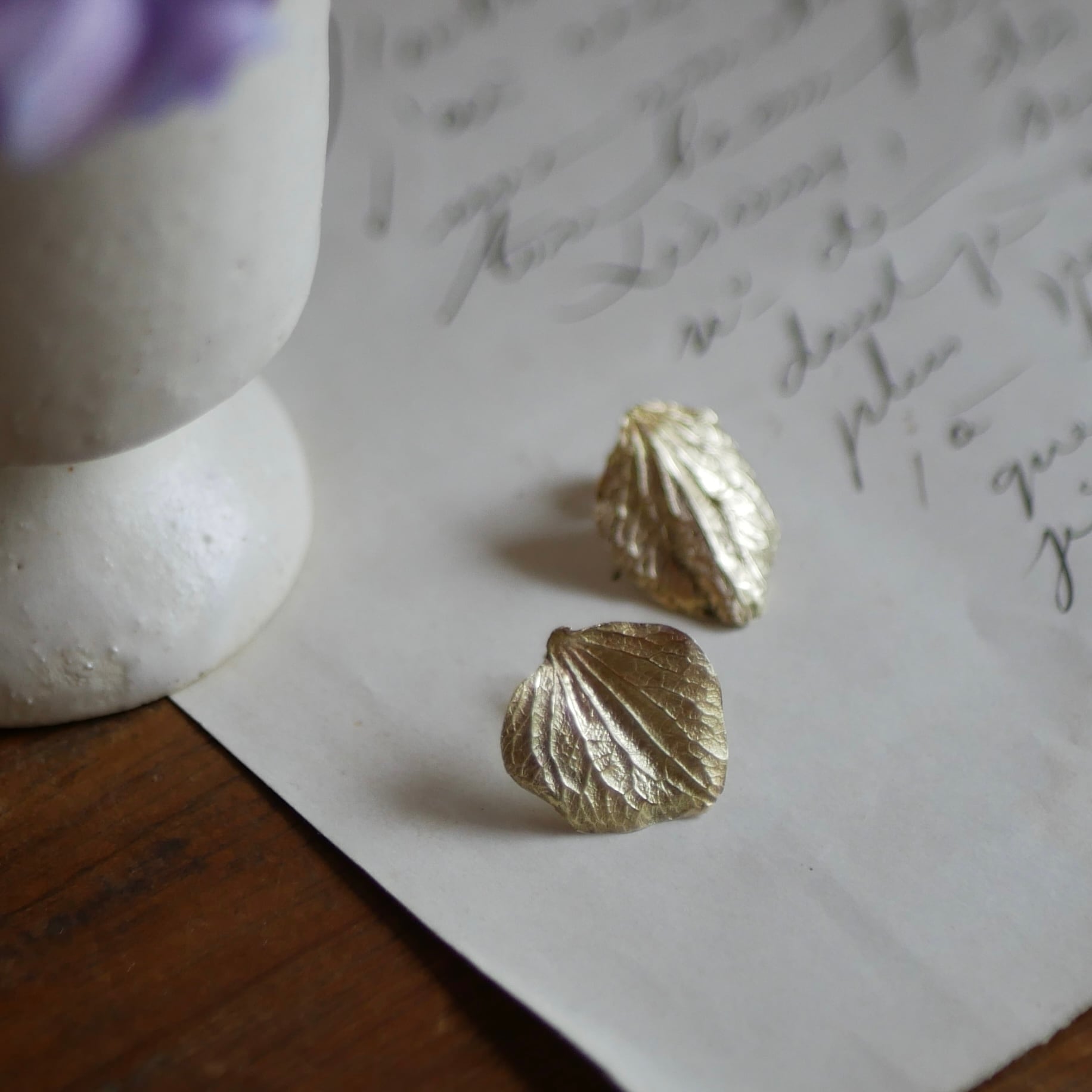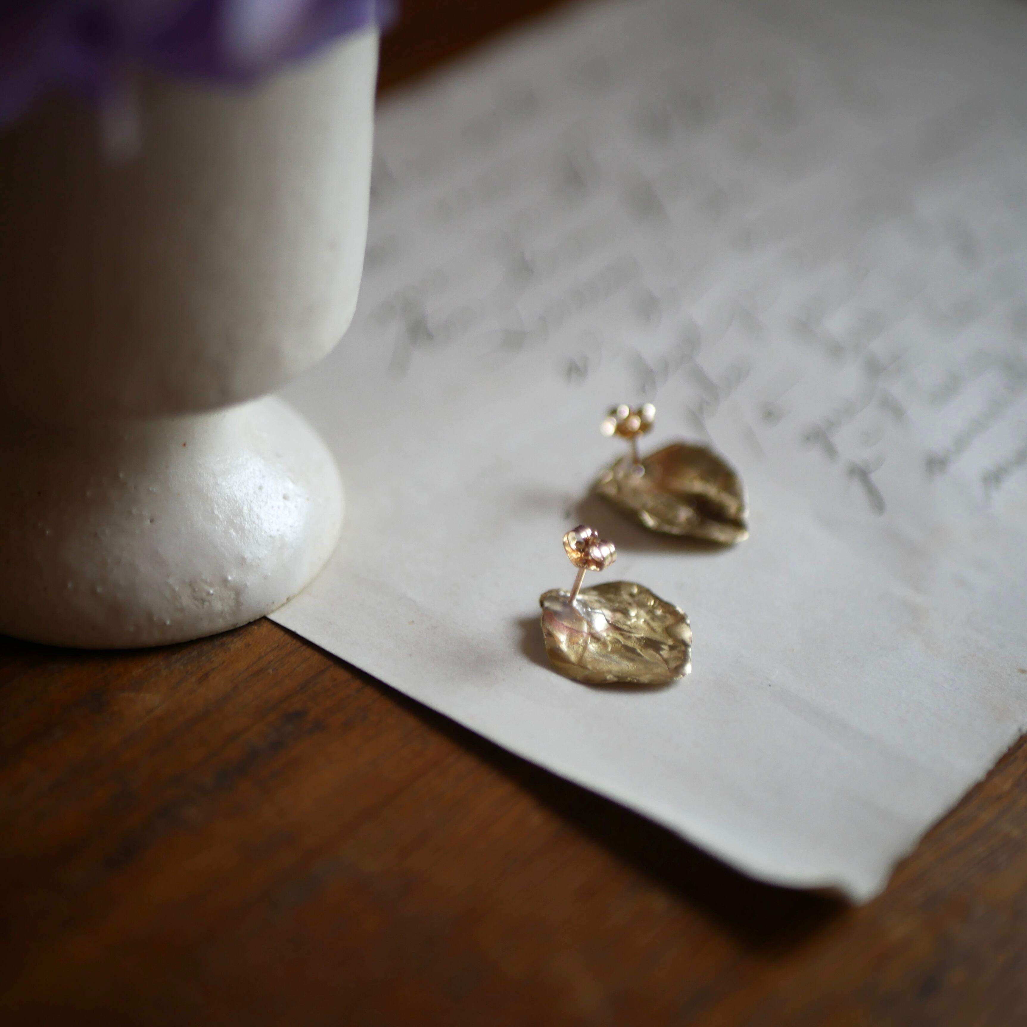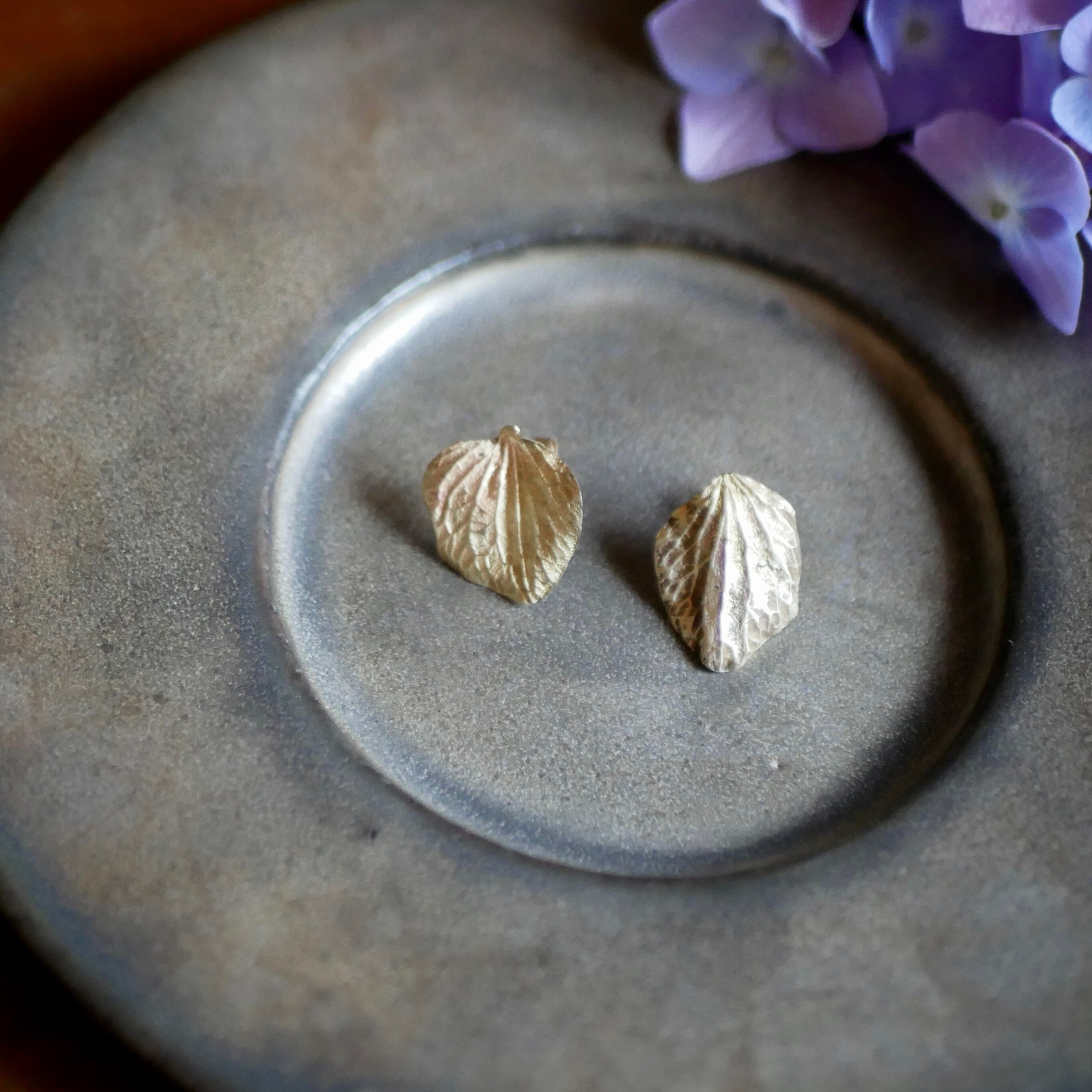 そのアジサイの花びらひとつを模りしてピアスに仕立てました