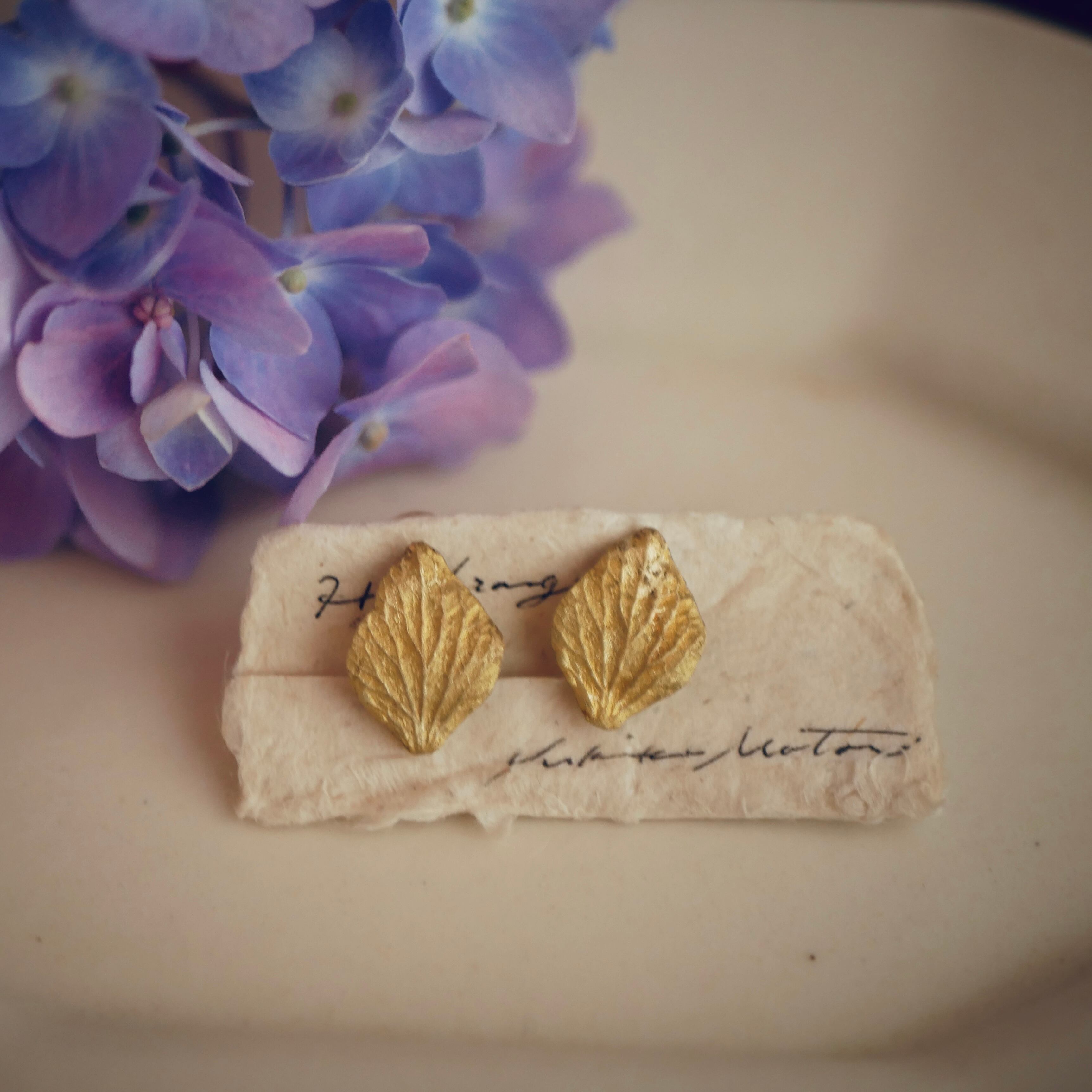 そのアジサイの花びらひとつを模りしてイヤリングに仕立てました