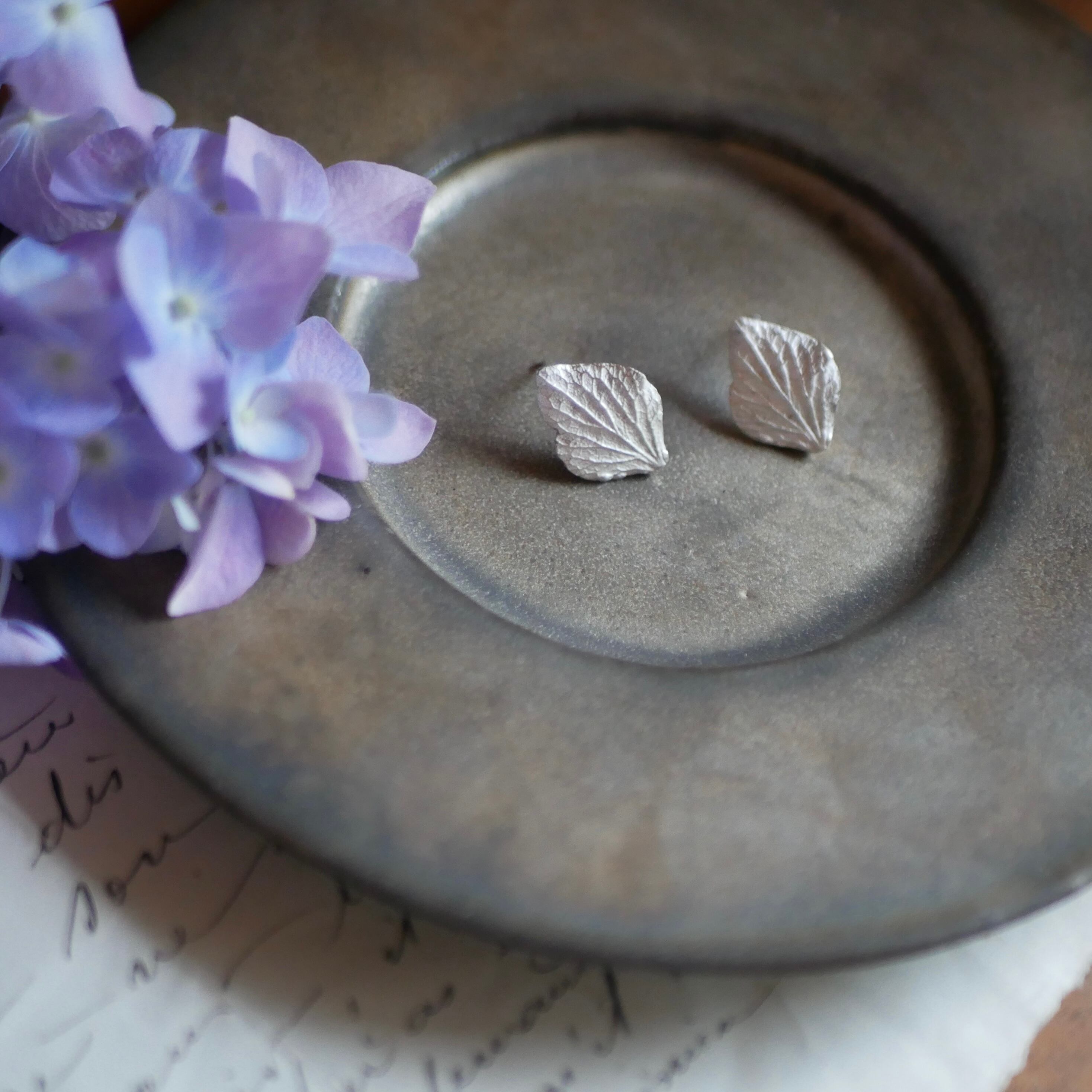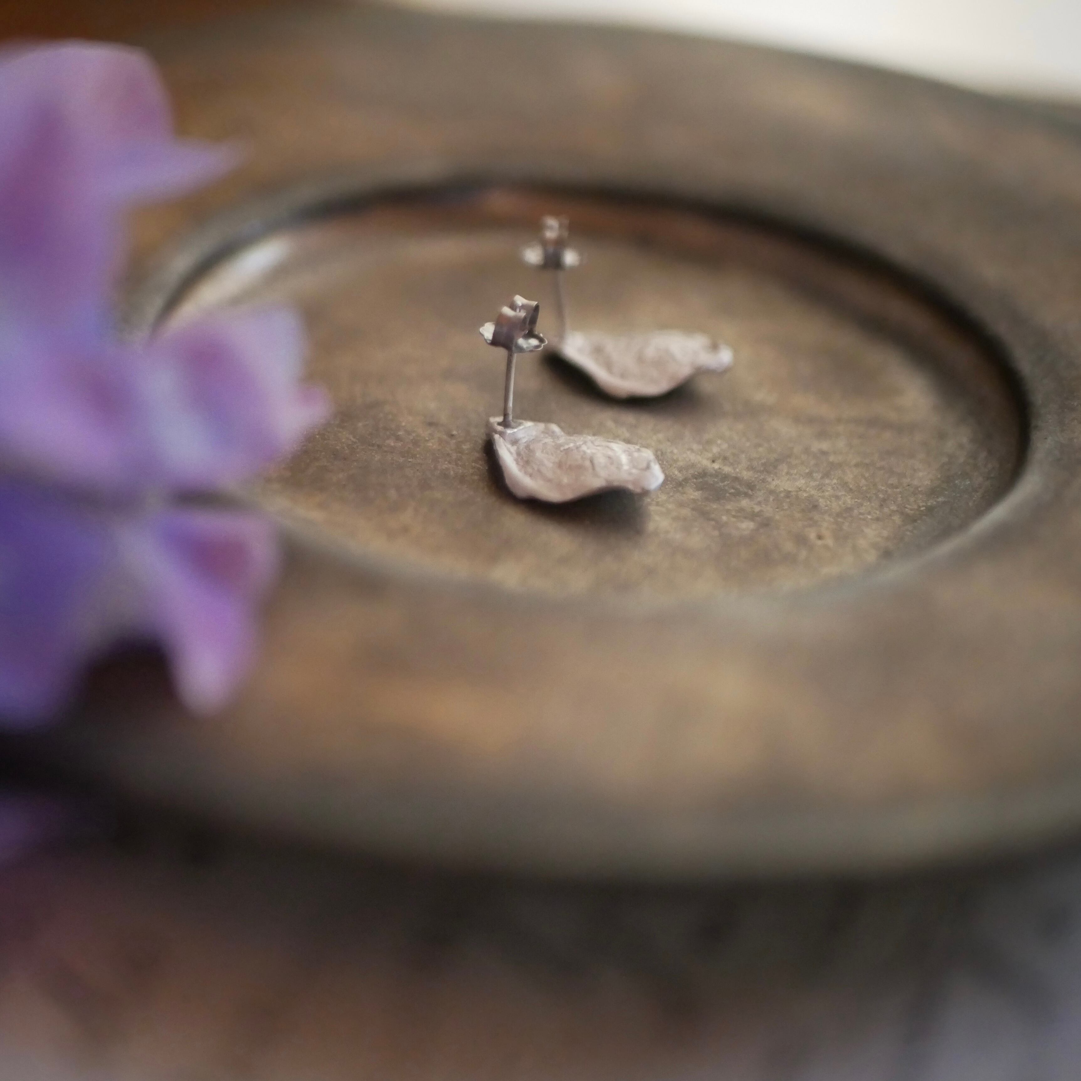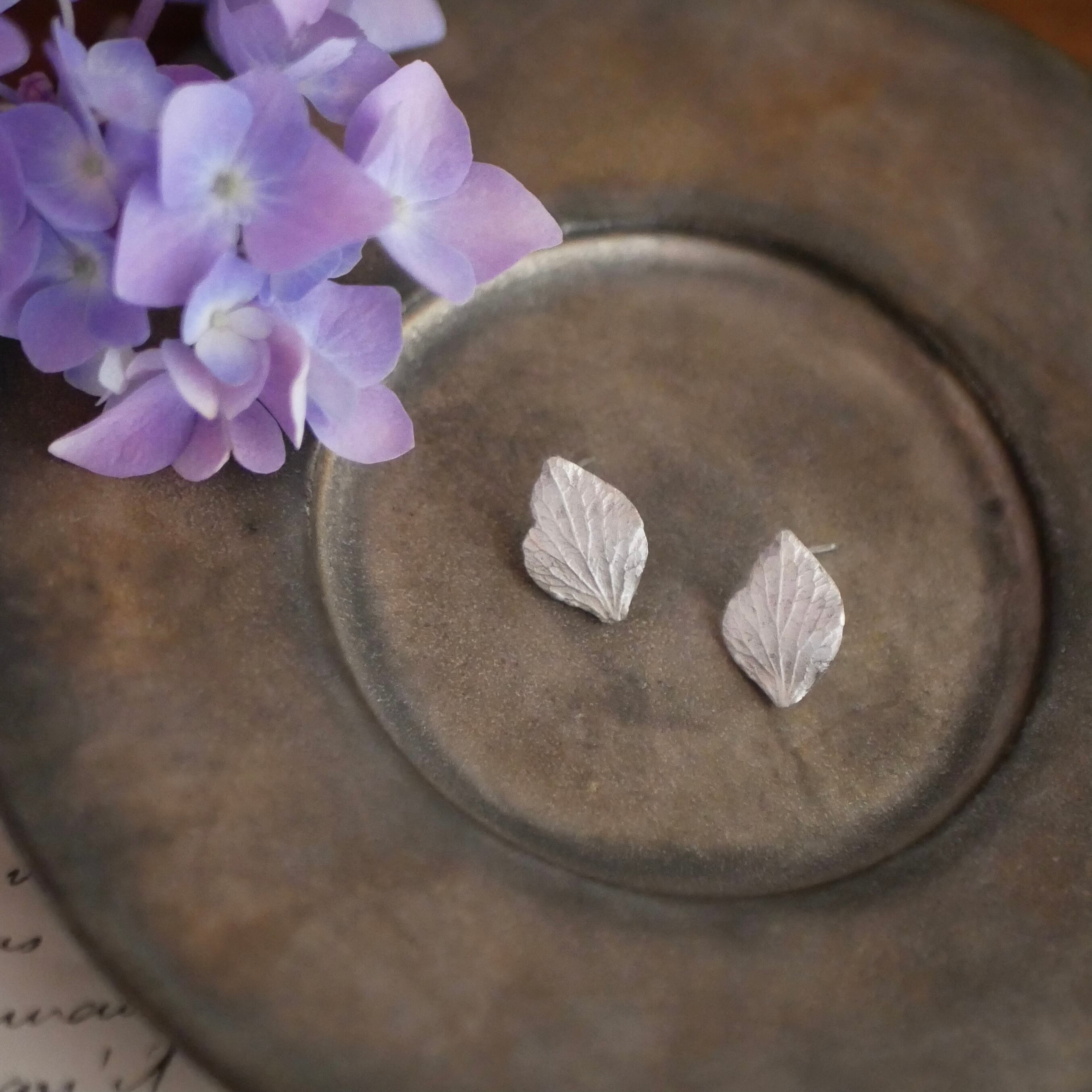 そのアジサイの花びらひとつを模りしてピアスに仕立てました