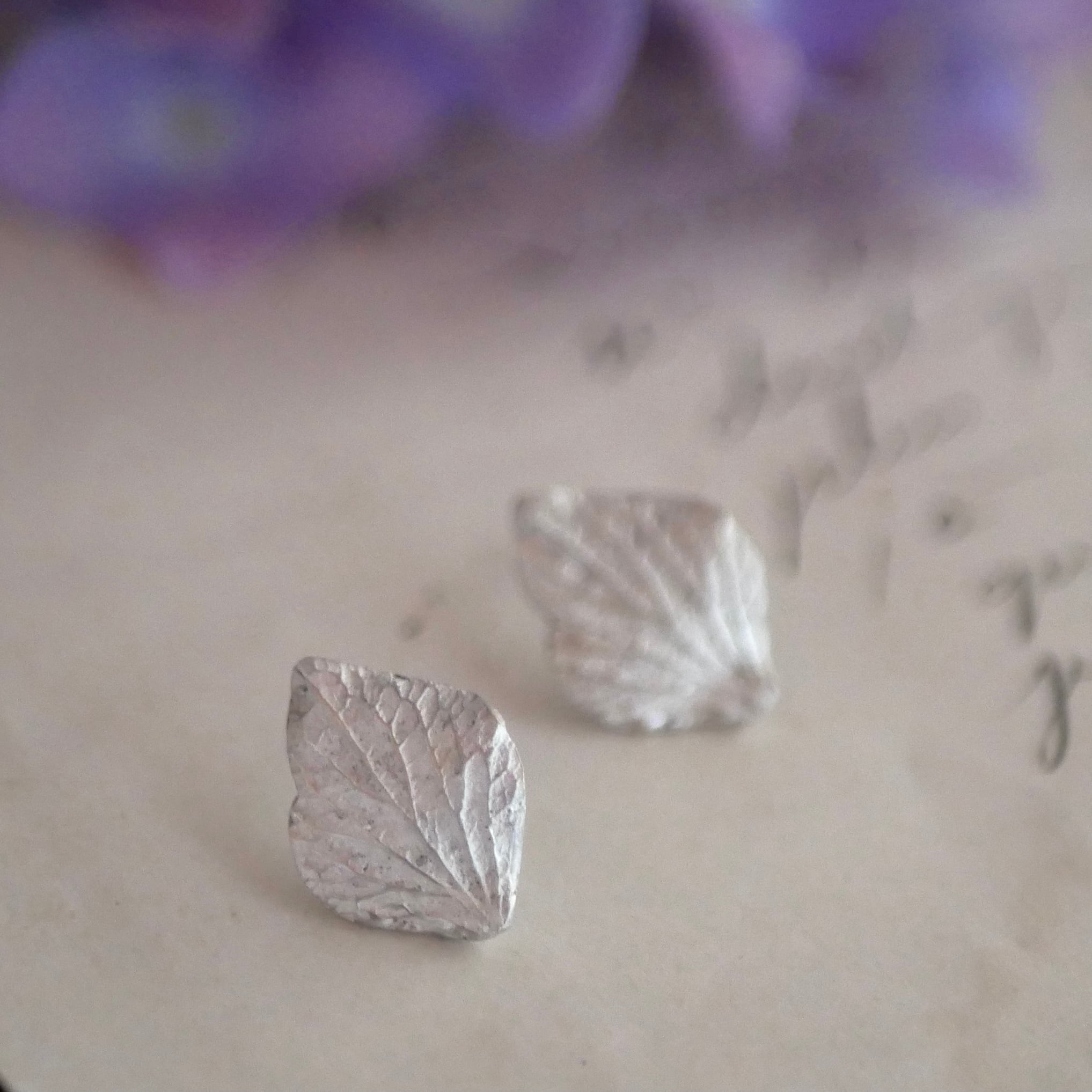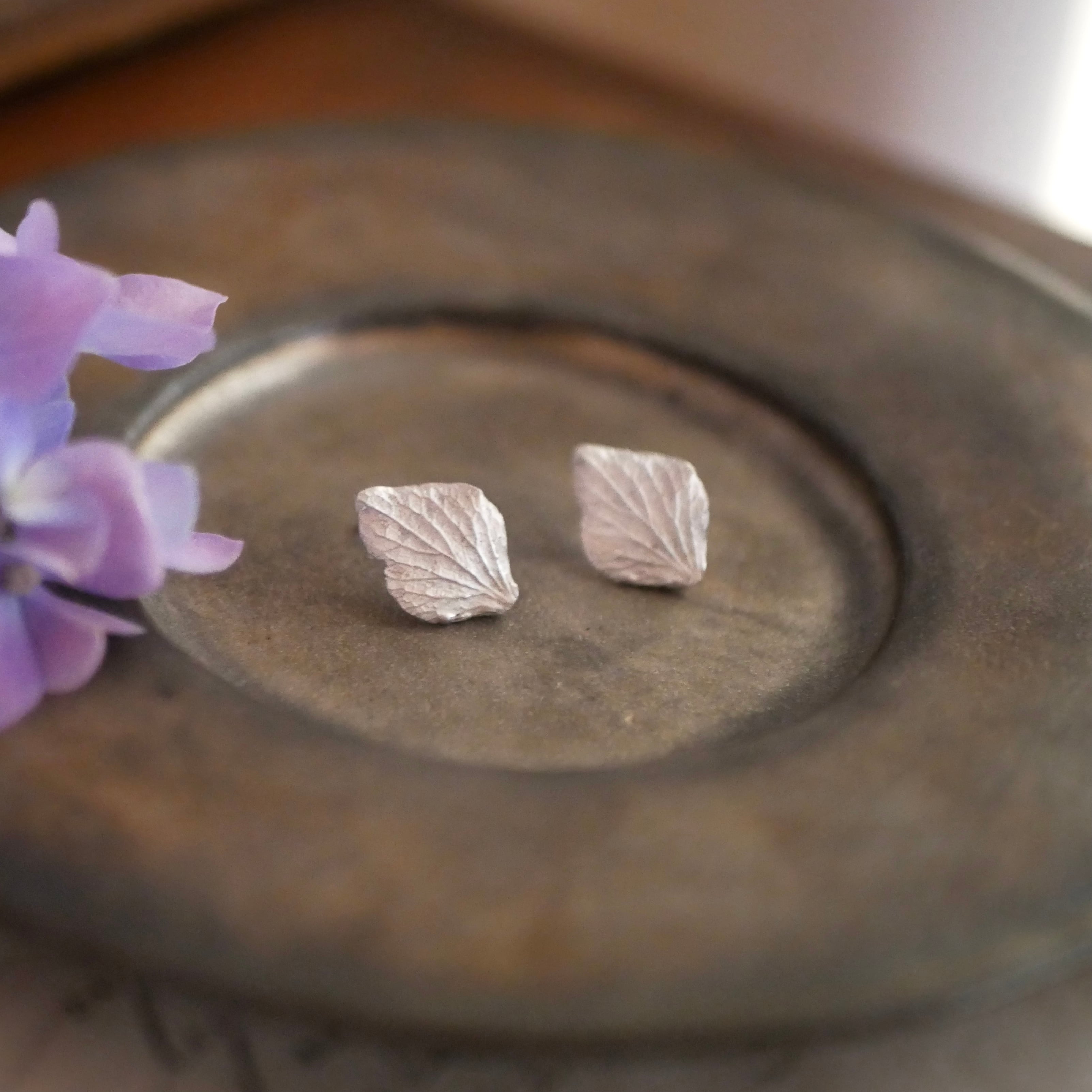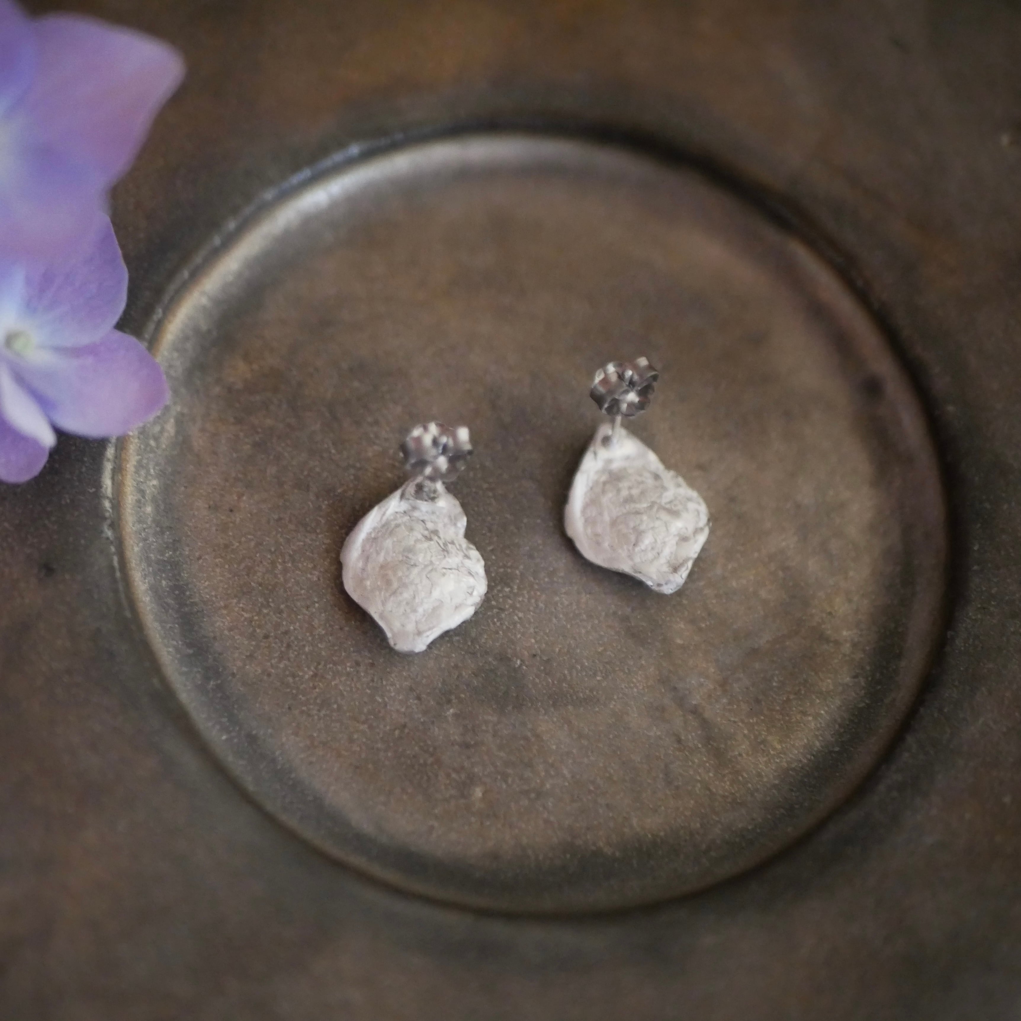 そのアジサイの花びらひとつを模りしてピアスに仕立てました