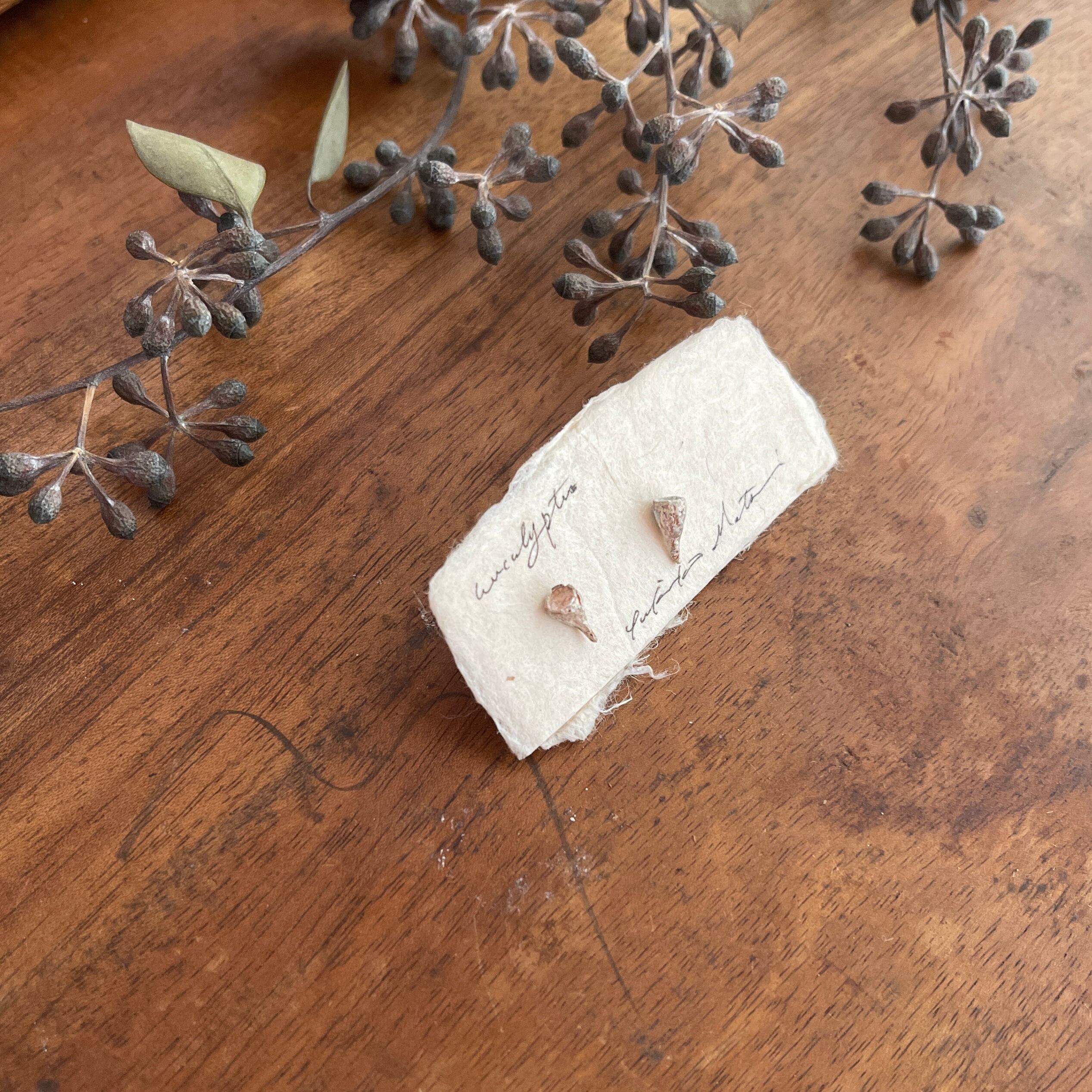 ユーカリポグロボラスの実をひとつぶ、ちょこんとピアスに仕立てました
