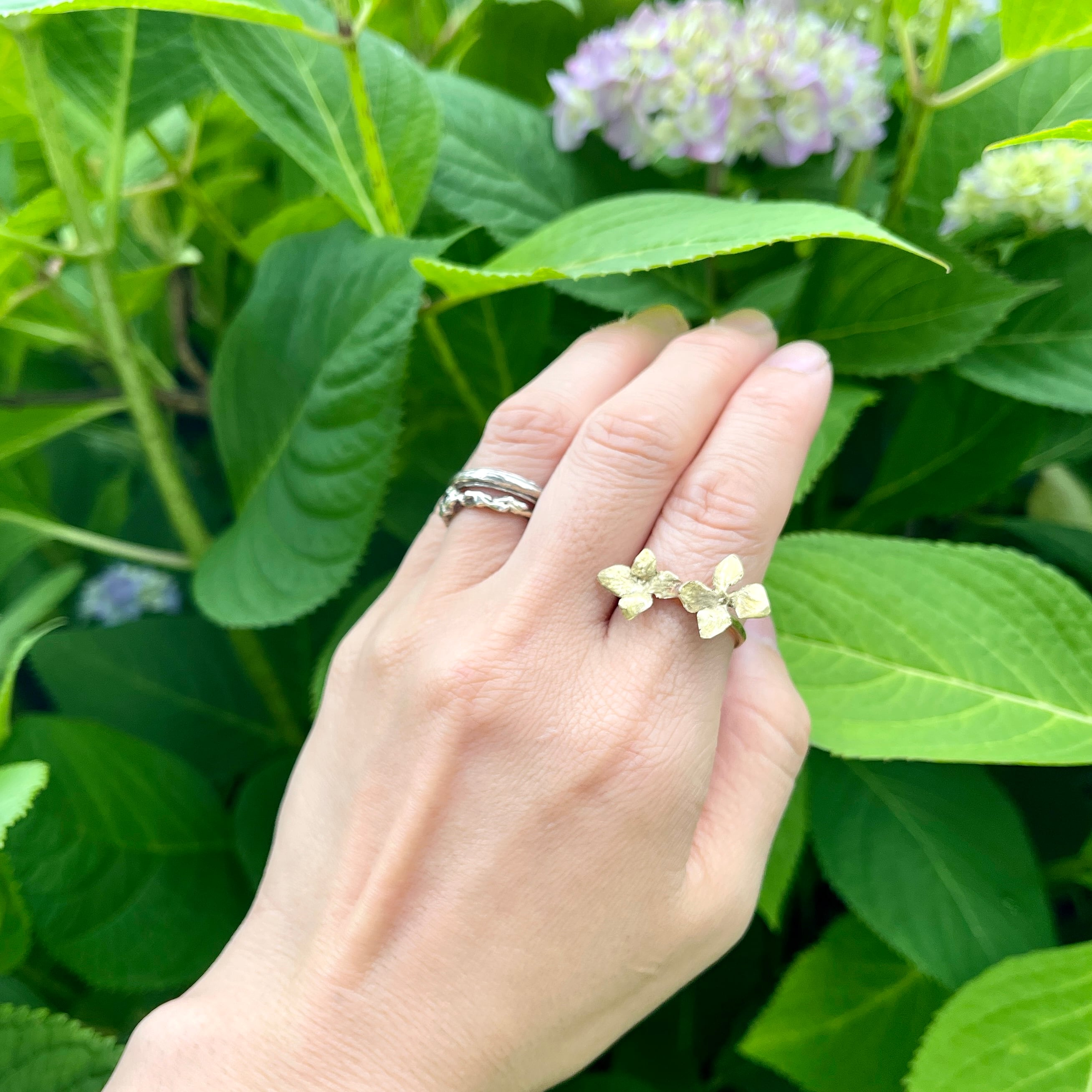 アジサイの小さな花びら(萼片)が愛らしい、Hydrangea アジサイちいさい花びらふたつリング