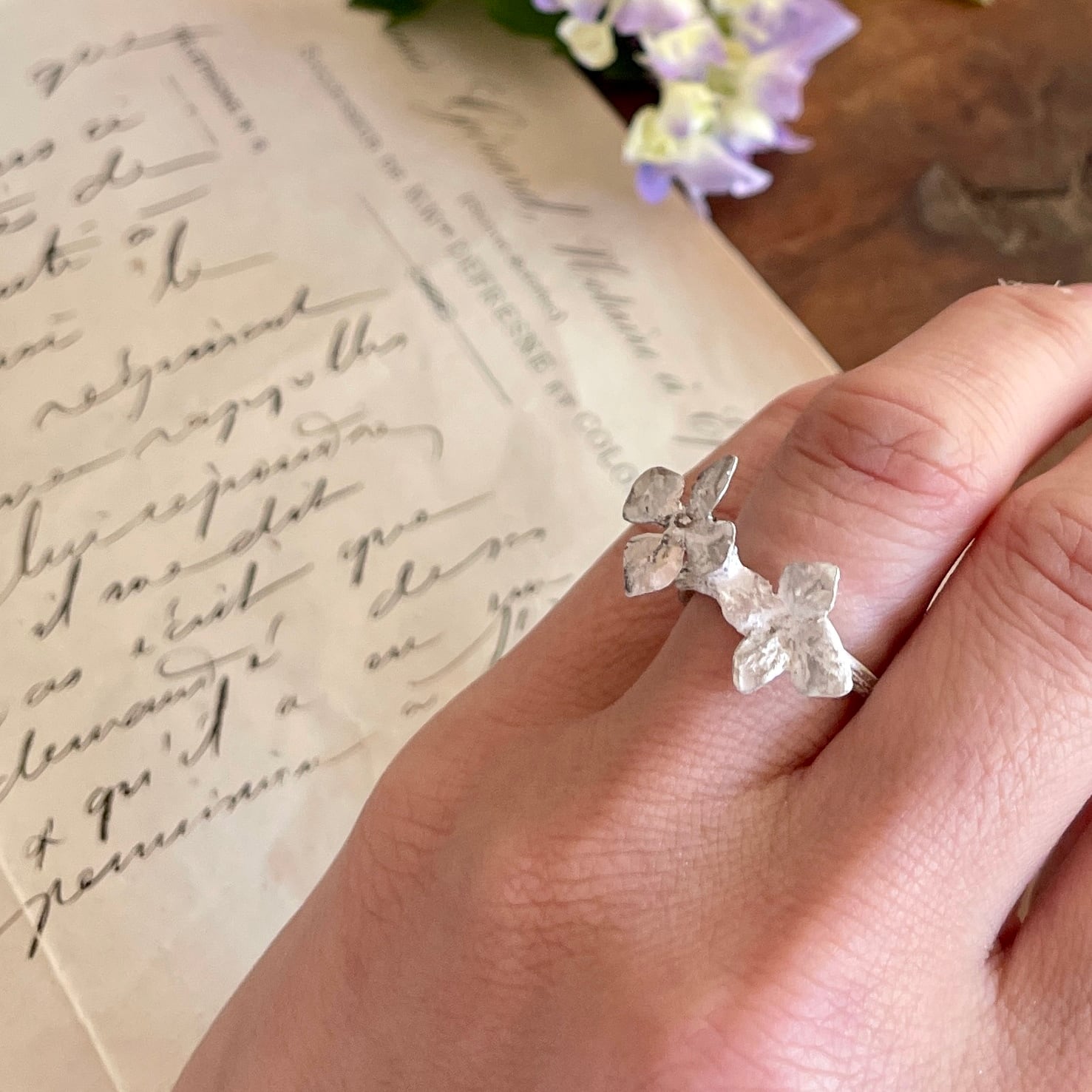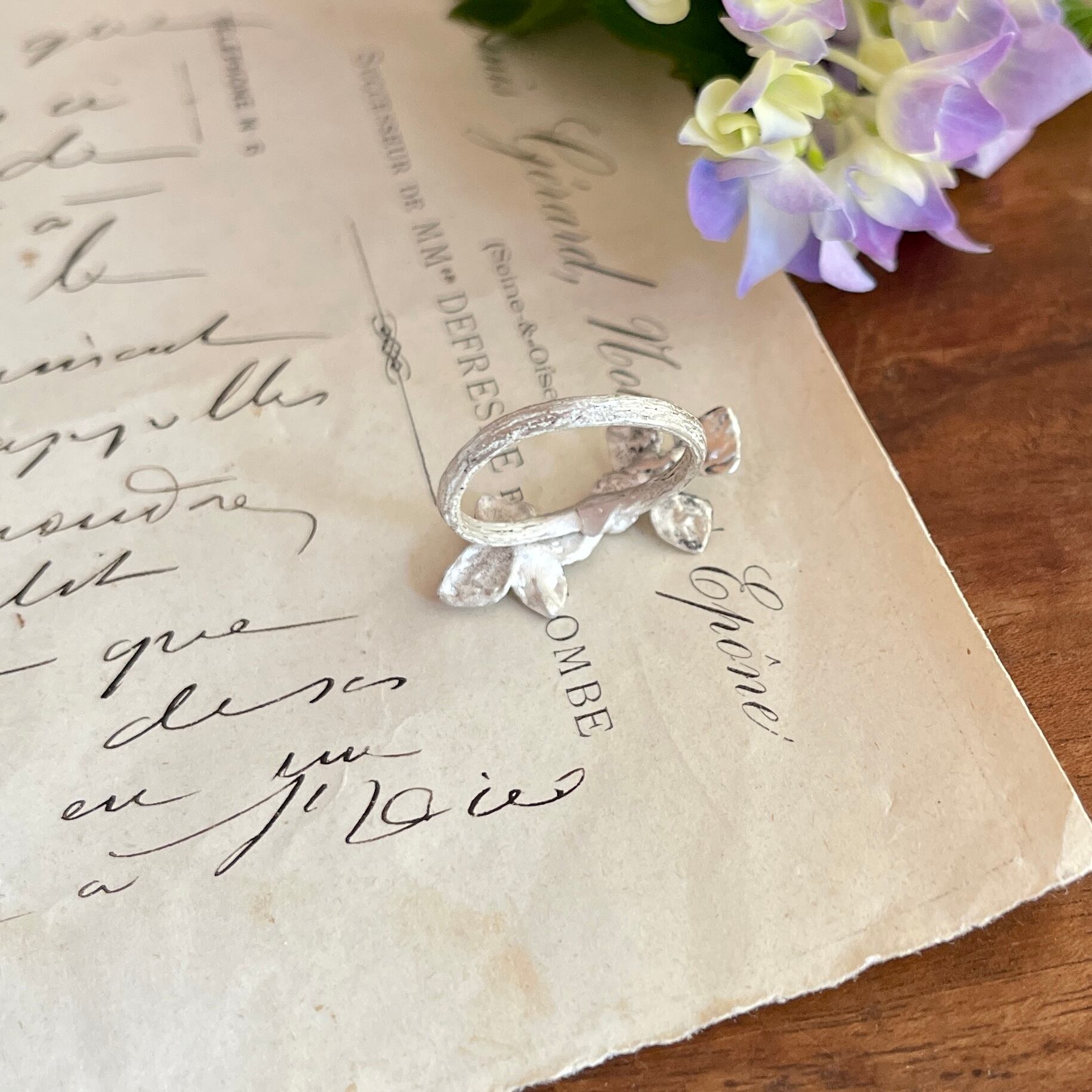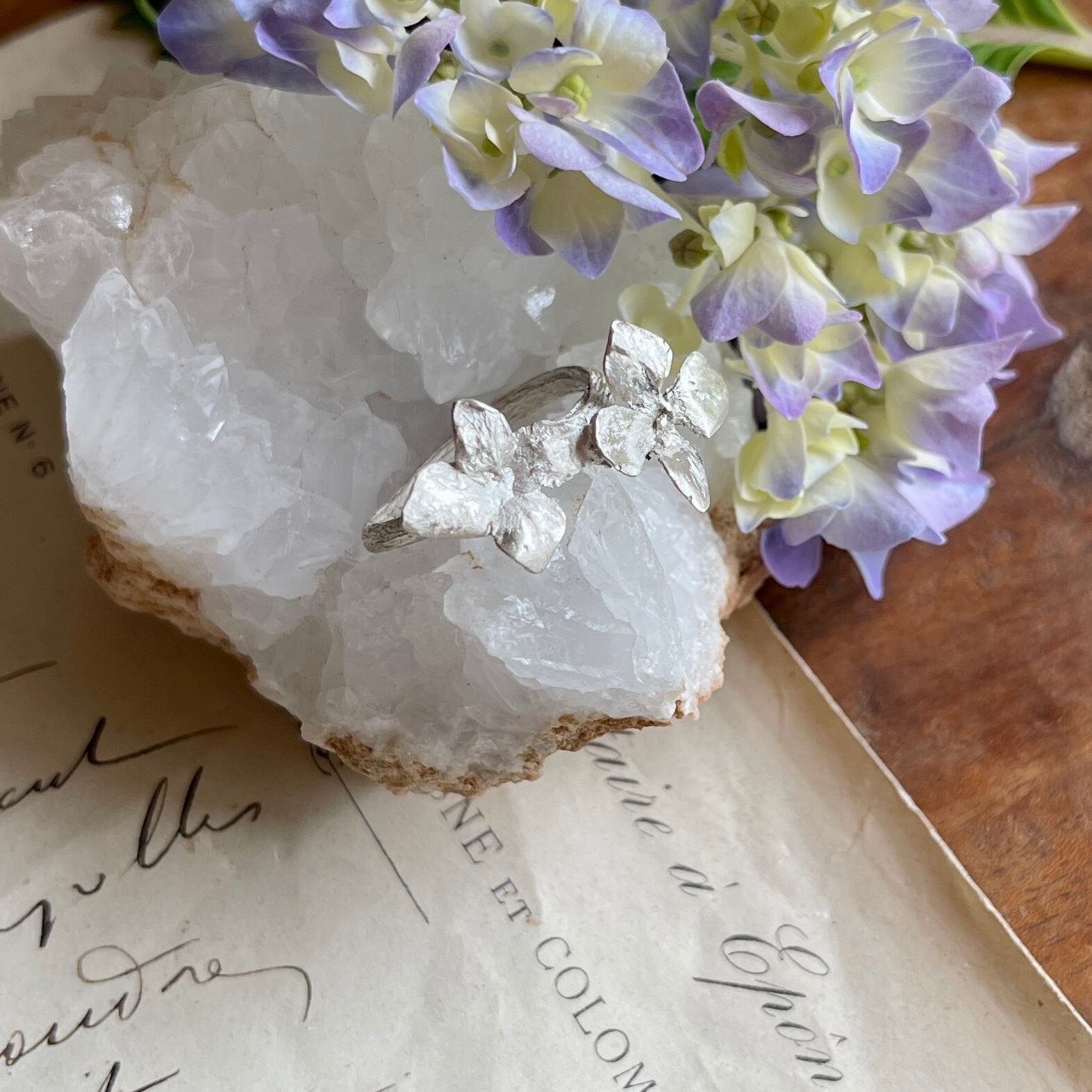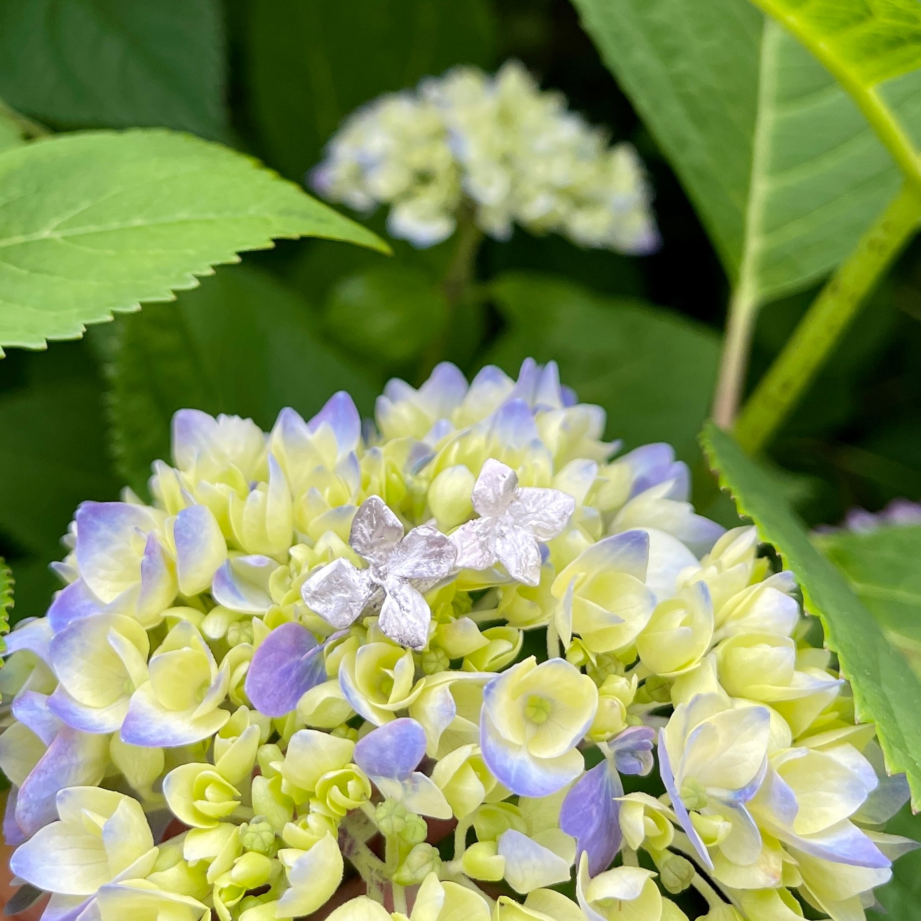 アジサイの小さな花びら(萼片)が愛らしい、Hydrangea アジサイちいさい花びらふたつリング